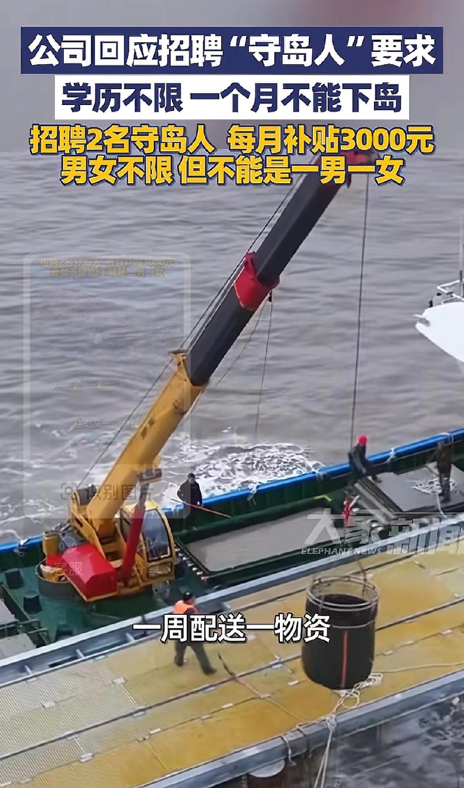 浙江舟山,一公司发招聘信息,2名守岛人,年龄25-50岁,没有学历要求,包吃住,但没有工资,只发3000-5000元补贴,还要求不能一男一女。网友炸锅了。 浙江舟山,一公司招2名守岛人,25-50岁、无学历要求,包吃住看似很香,结果却让人傻眼,没有工资,只发3000-5000元补贴,更离谱的是,还明确要求不能一男一女搭配!这波操作直接让网友炸锅了! 浙江舟山,一公司招聘守岛人,条件太奇葩!无学历要求、包吃住,却没工资仅给3000-5000元补贴,还特意规定:严禁一男一女搭档守岛!网友炸锅了。 据悉,一公司发布的守岛人招聘信息,直接引爆全网讨论,奇葩的招聘条件让网友直呼看不懂。 招聘信息显示,该岗位拟招2名守岛人,年龄要求25-50周岁,学历完全零门槛,男女不限,公司还承诺全包吃住。 这份守岛工作并非想象中那般惬意,岛上的实际生活条件十分艰苦。 宿舍里没有空调,直面海岛的阴晴风雨。 不过基础的通讯保障倒是齐全,有网络覆盖,打电话、玩手机都完全没问题。 物资供应方面,公司会每周安排船只往岛上配送新鲜食材和生活物资,且守岛有硬性时长要求,必须驻岛满一个月起,短时间想离岛根本没船接应。 而最让网友难以接受的,还是薪资待遇和特殊规定:这份需要长期驻岛、直面艰苦环境的工作,没有正式工资,仅发放3000元生活补贴。 更让人匪夷所思的是,招聘方还特意加了一条要求。两名守岛人严禁安排一男一女搭档,这波操作直接让网友摸不着头脑。 据了解,该岗位实际负责海岛养殖基地的日常巡检、数据记录、视频拍摄发布等工作,并非单纯的“看岛”。 公司负责人还透露,招聘信息发出后咨询电话被打爆,且补贴会根据工作完成度浮动,表现优秀者还有转正机会 。 此招聘发出后,引起了网友热议。 有人吐槽:“25-50岁壮劳力守岛一个月,没工资就3000补贴,包吃住又怎样,海岛条件苦还不能随便离岛,这钱赚得也太不容易了!” 不过,很多网友争议最大的还是:“为啥严禁一男一女搭档?怕孤男寡女在岛上无聊?还是担心工作分心?实在想不通这规定的意义在哪?” 也有人积极报名,留言:有没有同款社恐?就想找个没人的地方待着,不用社交,包吃住有网就行,3000补贴够花了,我报名! 笔者认为,企业或许是想通过这种方式筛选出真正能适应海岛工作、踏实肯干的人,而非单纯想来“体验生活”的凑热闹者 。 对于求职者而言,也需理性看待这份工作,不要被“海岛生活”的浪漫想象冲昏头脑,需充分考量自身能否适应艰苦的驻岛环境,再做出选择。