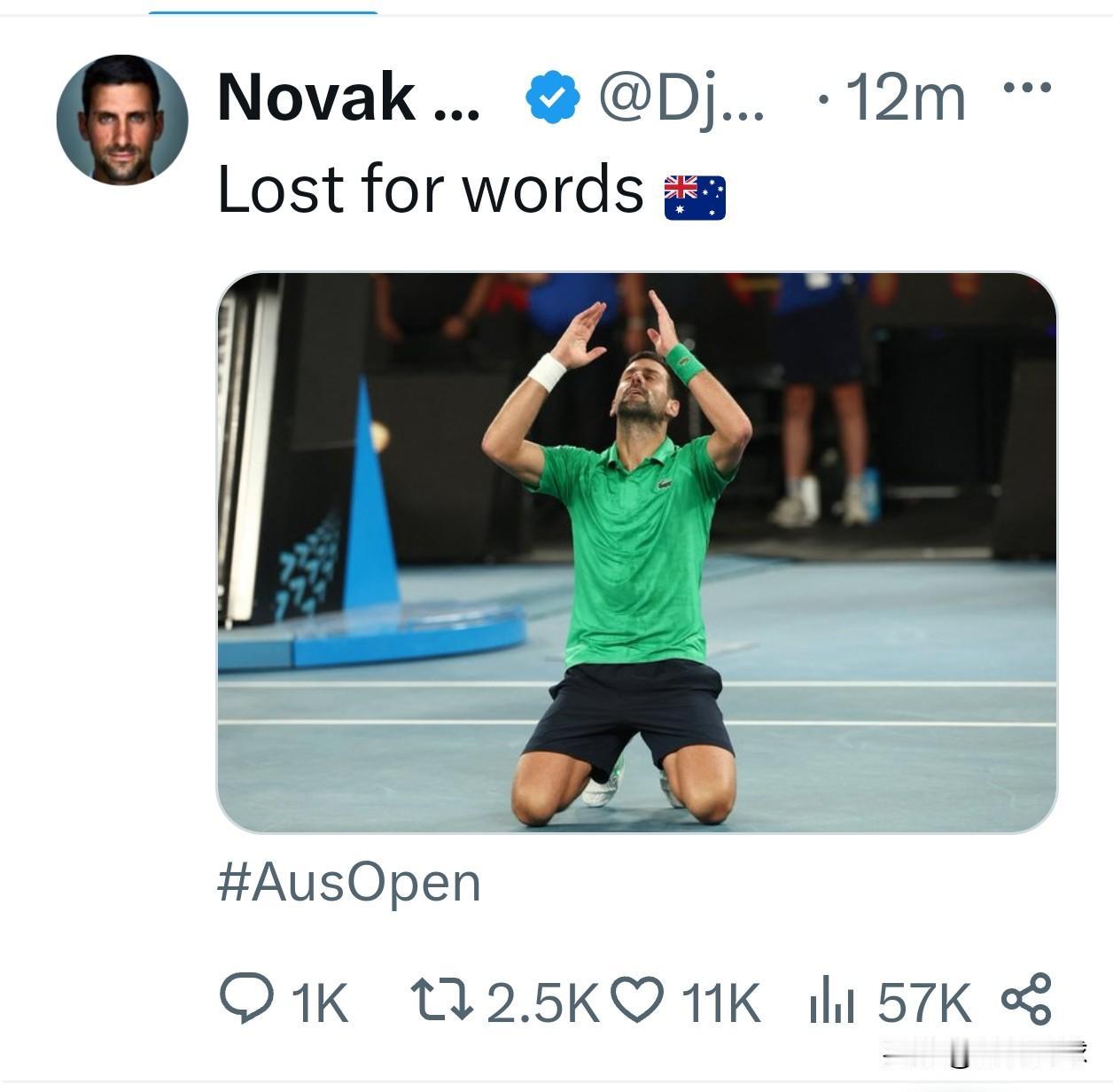 德约晋级决赛后发文: “无言以对。” 此时无声胜有声! 德约科维奇