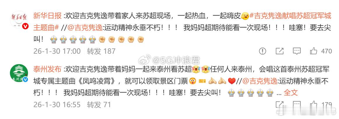 新华日报喊话吉克隽逸 一起热血一起嗨皮,这邀请语好接地气,感觉现场氛围一定会被带动起来。