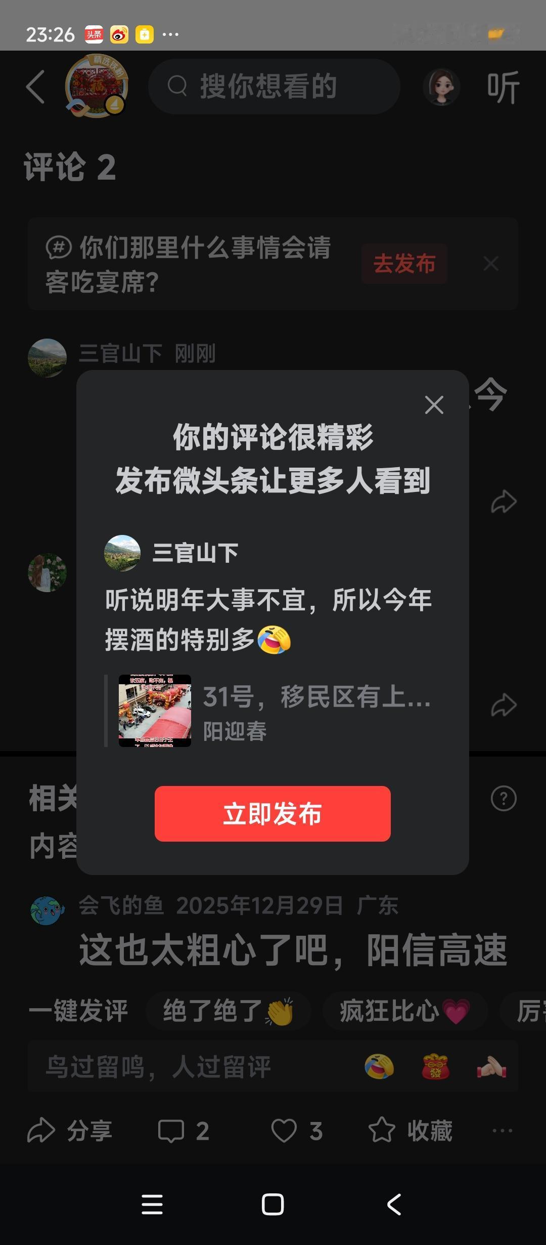 听说明年诸事不宜,所以今年我们那里今年办酒席的格外多。 不知全国其他地方是否也有这样的习俗,办喜事都要找算命先生(我们粤西称“日子佬”),算一算全家的生辰八字,挑选最佳的良辰吉日来摆酒席呢? 而我们粤西人办喜事可是极为讲究的,有些请“日子佬”算,觉得今年日子不佳,便会选择明年再办。 反正是佳年办喜事的!