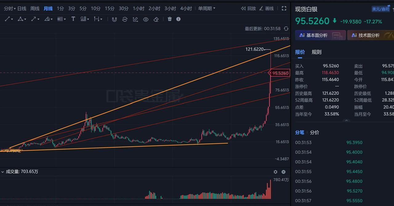 这轮金银灾比预期的要快,沪银都干跌停了,历史每次黄金白银基本都要冲高后调3个月左右才大跌。美元指数一涨,大宗商品多数要跌。前几天还奇怪美元指数涨为啥大宗还哐哐朝高里跑,感情是是趁萌芽期拉高出货。有人说贵金属涨了利于去美元化,金毛直接关门停摆,毕竟谁会拿鞭子没事抽自己呢?没数据降息就要延迟,不得不说,50年几代人画的k线真顺滑,前几天技术分析精准预测顶部,只是没想到这么快,11年白银大涨,冲进去的喊着这次不一样。而这次又是同一批人喊着这次不一样,结果又站在了山岗……