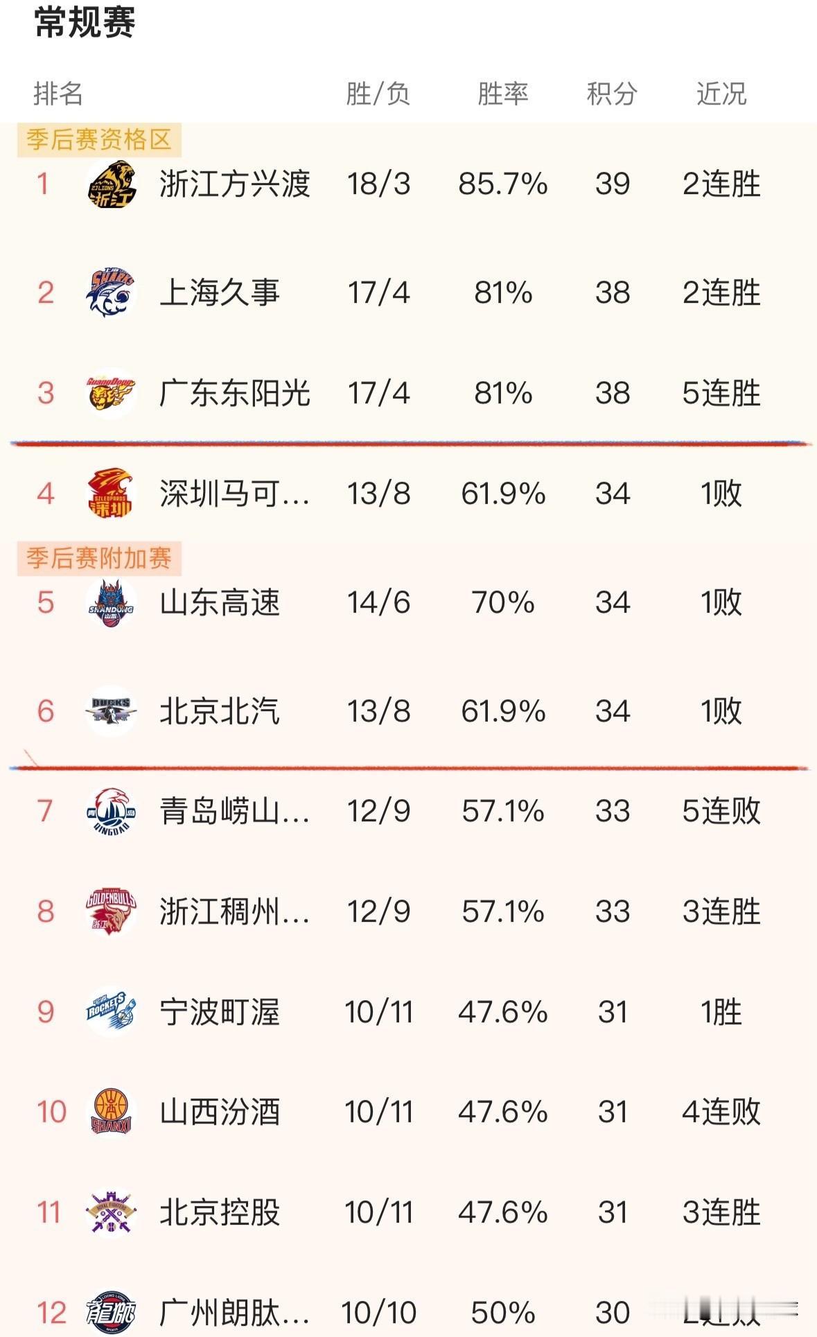 CBA资讯速递深圳男篮虽负但仍挤进前四季后赛资格区,昨晚深圳男篮5连胜遭上海久事101:92终结,但仍然凭借13胜8负、34积分、61.9%的胜率挤进前四,将山东卡到第五的位置!有意思的是北控男篮和深圳男篮数据一样却在第六的位置,山东男篮数据较高却在第五,这个算法真是令人费解!