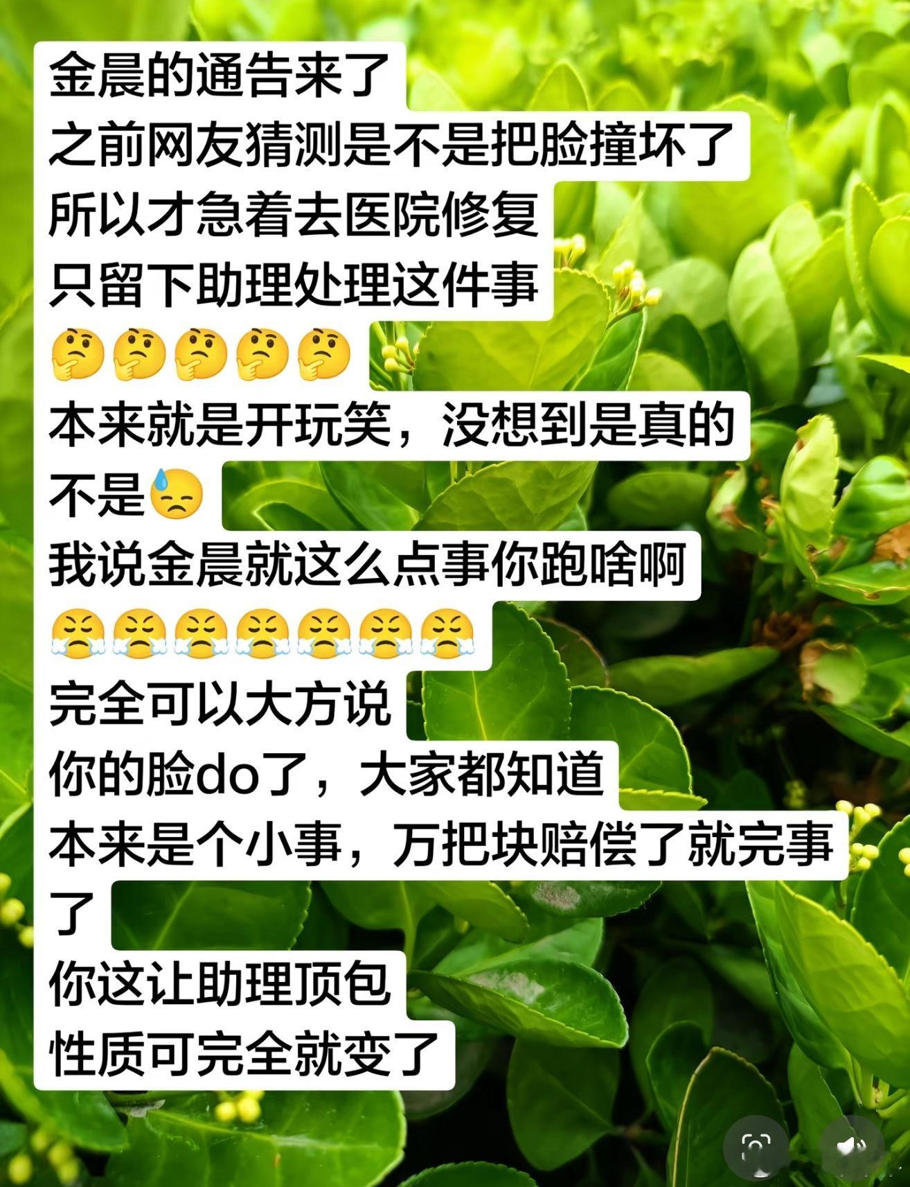 警方通报金晨事件金晨助理顶包或被拘留罚款1.首先肯定是助理替金晨顶包,毋庸置疑,金晨应该处理完以后去交通队说清楚才行,否则就有顶包的行为。2.但代入打工人的角度:我的老板是明星,并且这件事不光荣,现场也只剩我一个人,老板面部严重受伤,我为了省麻烦可能就是会像她助理这样做,谁知道被人拎出来挡雷啦?3.也有可能金晨故意指使助理顶包,这个就很严重了,最起码也是默认助理顶包。根据目前警方通报的情况,金晨的助理徐某青涉嫌行政违法,但不构成刑事犯罪。