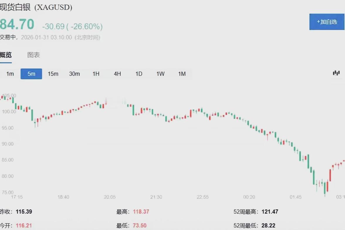 🔥突发!金银史诗级大跳水,一夜蒸发万亿?黄金闪崩、白银重挫近20%,多头全线踩踏。前期暴涨积累巨量获利盘集中出逃,美联储鹰派预期推升美元,交易所上调保证金引爆杠杆平仓,多重利空共振砸盘。抄底还是止损?你觉得怎么样呢?评论区聊聊。黄金白银价格 黄金白银