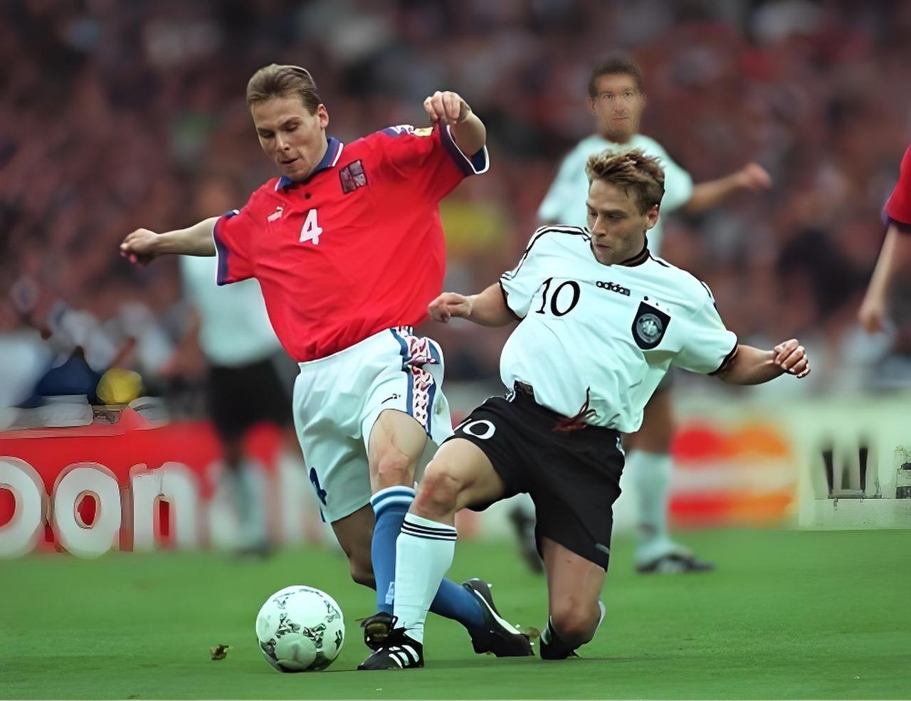90世界杯阿根廷负于德国,引出了好些讨论热点: 1.球衣的玄学:1986年墨西哥世界杯,阿根廷主场球衣,德国穿绿色客场球衣,德国落败(图2);90年意大利之夏决赛,据说是德国强烈要求穿上主场球衣,阿根廷只好穿上蓝色客场战袍,结果点球憾负(图1);2014年世界杯决赛,阿根廷同样穿客场球衣,结果被格策一球绝杀(图3)。话说,无论是哪支球队都不希望决赛中穿客场球衣,因为这种操作实在是“劣迹斑斑”,除了86、90外,2006年的法国也是“客场球衣”的“受害者”,齐祖还上演了头槌撞倒马特拉齐的世界名画(图4);另外,2000年和1996年欧锦赛,身穿白色客场球服的意大利身披红色客场战衣的捷克,分别被特雷泽盖和比埃尔霍夫金球绝杀(图5、6)。一直到2010年,这个魔咒才被穿着蓝色球衣的西班牙打破,他们战胜了穿上橙色传统球服的荷兰而登顶(图7)。 2.点球该不该判罚:我熬夜看了直播,我的观点是,不判可以接受,判也似乎没什么毛病。当时森西尼从侧面滑铲,严格意义上是对沃勒尔有一定强度碰撞的,足以让对方摔倒,但在那个比赛将近结束的时刻,裁判给点球应该审慎!尤其是对于世界杯决赛如此重要的赛事!不过,此前戈耶切亚曾经在禁区扑倒奥根泰勒,马特乌斯在禁区被绊倒卡尔德隆,都应该给点球!只能说,裁判对判罚尺度的把握,我真的不敢恭维。还有,蒙松飞铲克林斯曼那个动作,虽然有点粗野,但我个人认为顶多应该给黄牌,克林斯曼的凌空飞起和倒地翻滚有一定的表演成分。 3.最后就是阿根廷的防守一直不好,2014年格策那个绝杀,成了梅西永久的痛,也用尽了格策的运气,但我更关注的是,当时阿根廷的后卫哪里去了??格策根本处于无人防守的状态,对于世界杯决赛加时赛如此重要的时刻,怎么能让对方的前锋如此轻松的直接冲到守门员面前,而身边一个遮挡、紧逼甚至干扰的人都没有??98年世界杯,阿亚拉两次成为对方前锋的布景板,一次是欧文,一次是博格坎普(图8、9),然而,不好意思,阿亚拉据说已经是当时阿根廷拿得出手的素质较高的后卫了!南美球队,锋线上可以人才济济,但是防守嘛,真的是乏善可陈,这可能跟他们相对松弛的性格有点关系吧。 关于那场决赛,还引出了您的哪些回忆?老球迷们不妨在评论区聊聊。