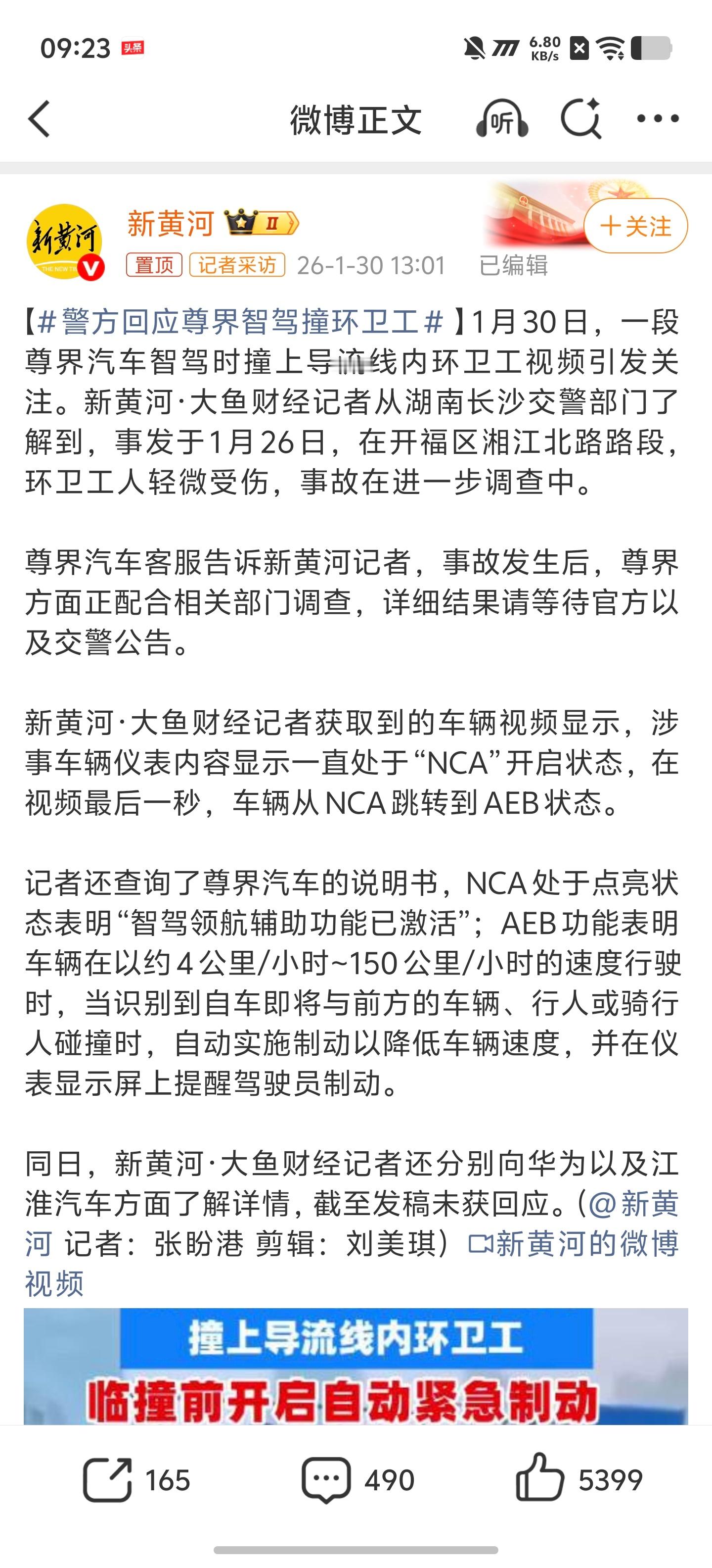 警方回应尊界智驾撞环卫工如图