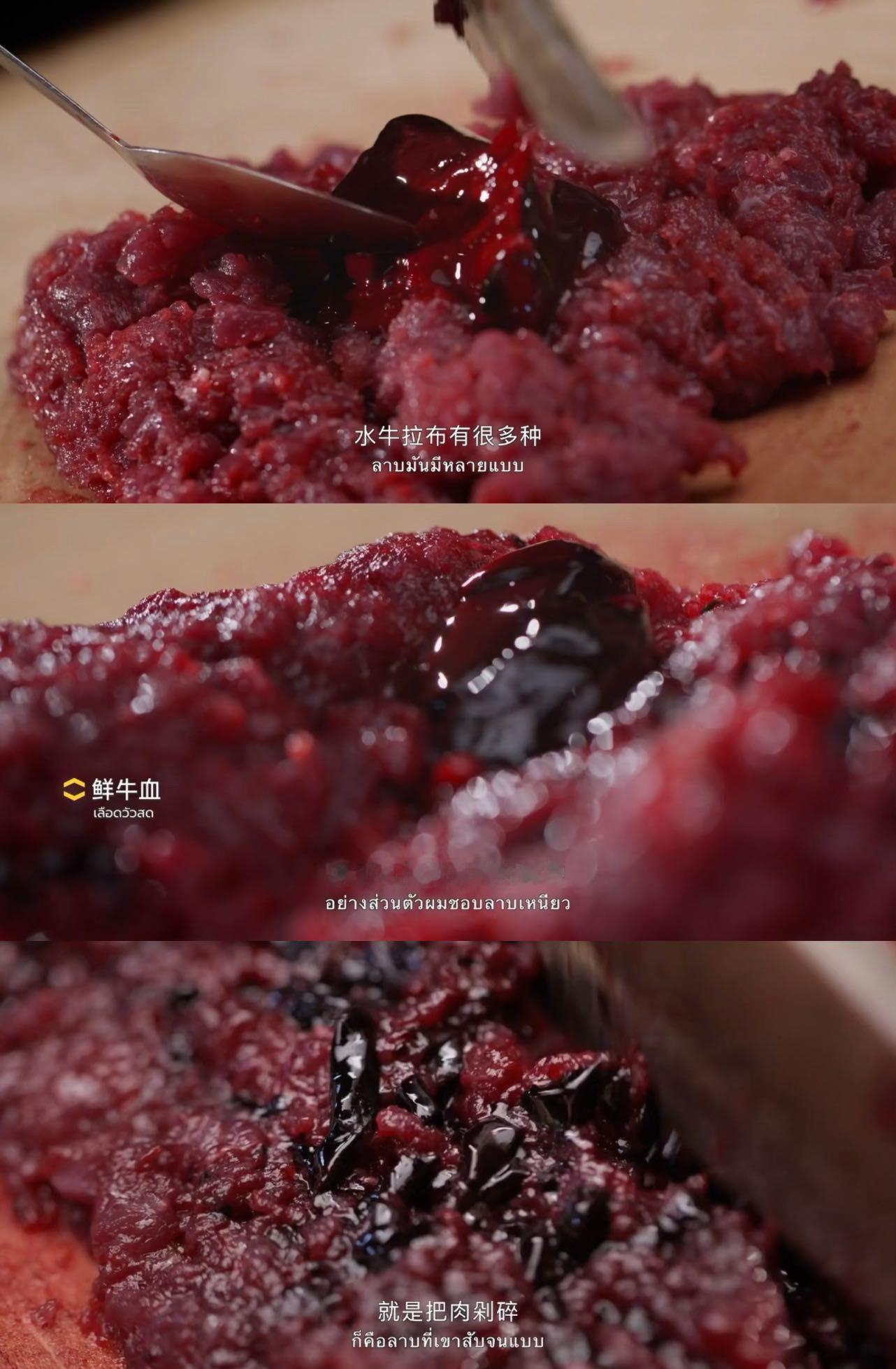 泰国生牛血牛肉沙拉太味了 泰国这个生牛血牛肉沙拉一整个打开了我的美食新大门,这是真实存在的“美食”嘛,我震惊了,当地人说只要回到清迈,一定要去吃,可见他们的喜爱程度,陈晓卿团队的泰国美食纪录片是会拍的。