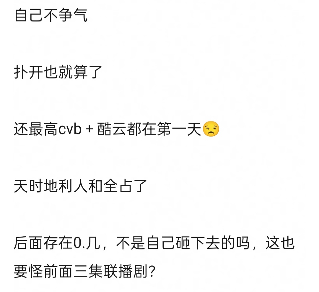 小城大事接的1.2高盘,不管是酷云还是CVB最高收视都是第一天,后面越播越差纯属