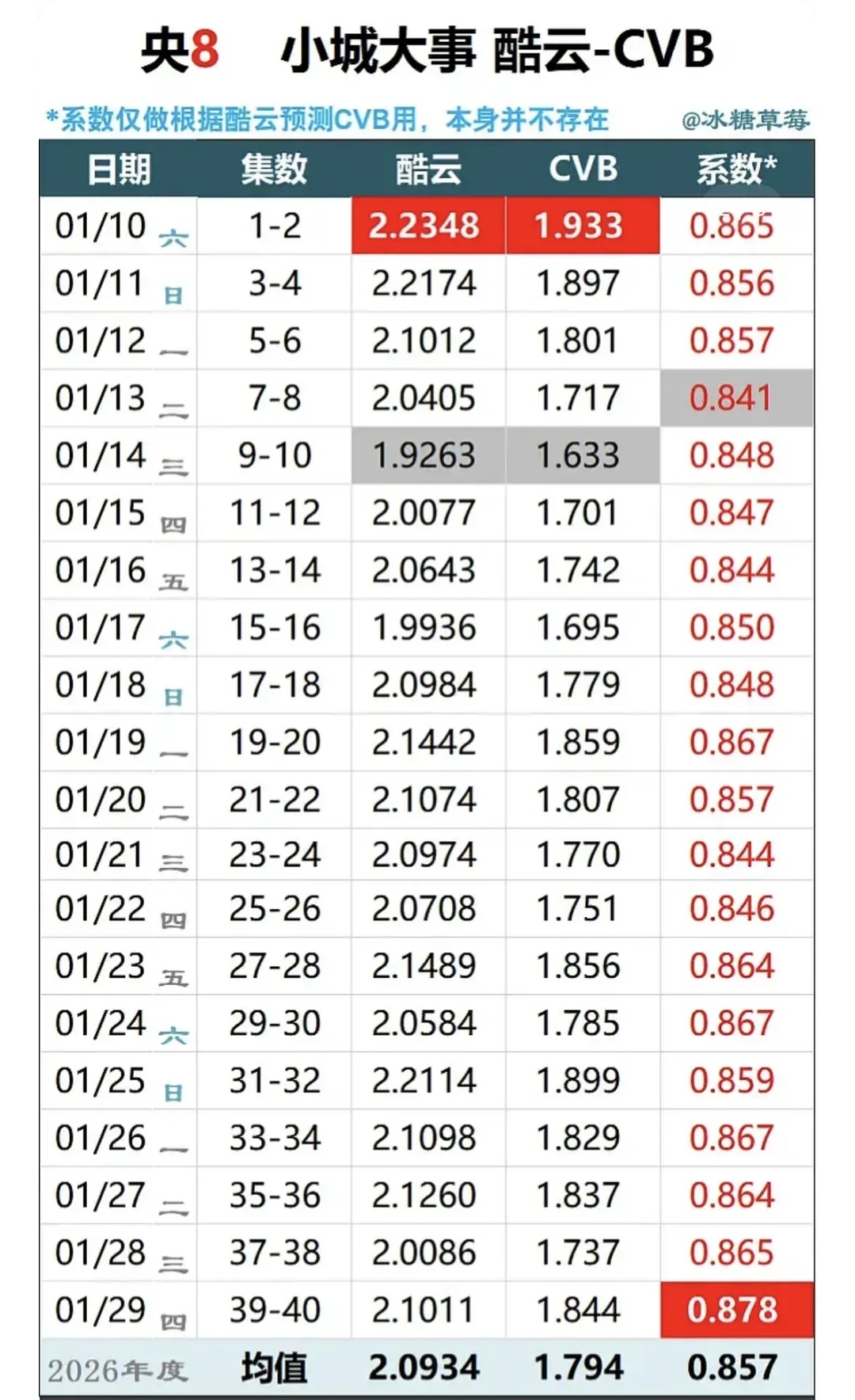 央8开年大剧小城大事CVB仅有1.7,现在丽粉吹的年冠是因为目前只播了一部剧,但