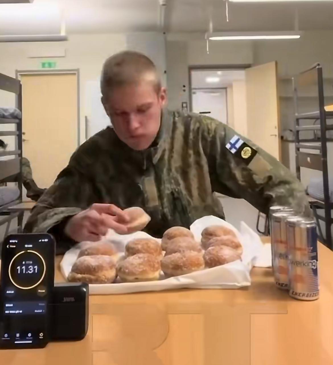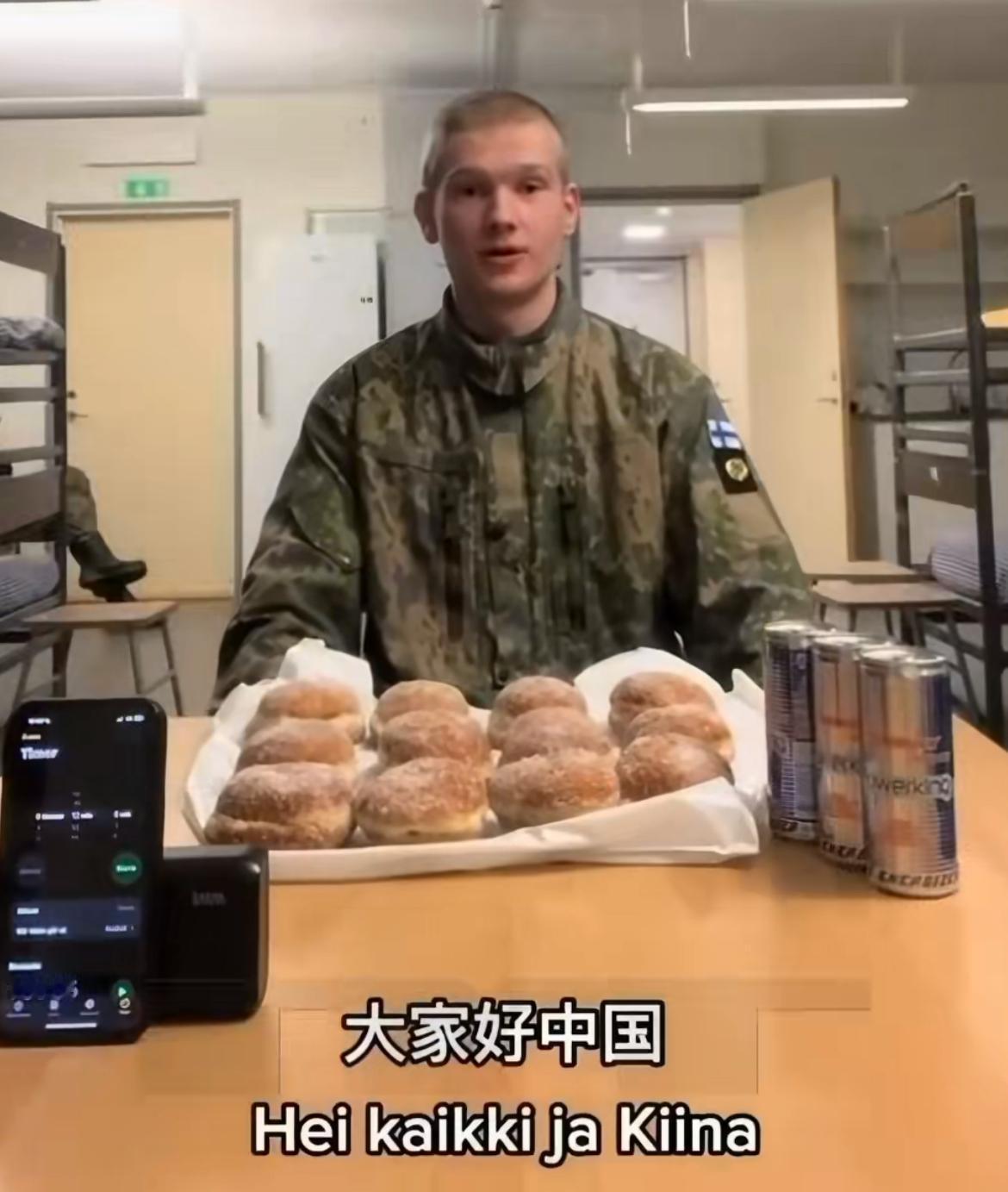 芬兰军人用中文直播做吃播,挑战12分钟吃12个甜甜圈,吃了10个后彻底吃不下了,直言没有想象的那么简单,对自己完不成挑战表示歉意 外国军人真的太拼了,泰国军人在战场上拍视频卖防晒霜,美国军人拍摄各种战备走红成百万网红,收入远超工资,为了发展副业真的太拼了