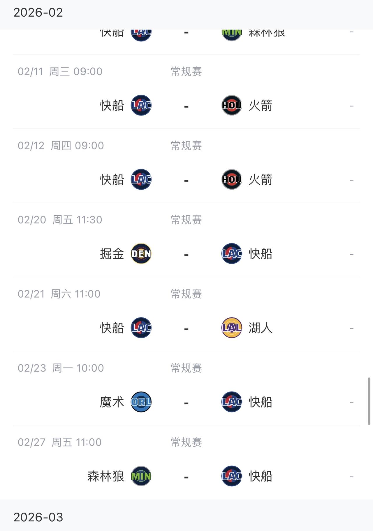 看了快船2月份的赛程,真的是倒吸一口凉气! 这将是一趟要么被凿穿,要么扬帆起航的魔鬼之旅! 整个2月份11场比赛,除了国王之外,其他都是东西部前七的球队! 西部对手中,两战火箭,两战森林狼,再战掘金,还有太阳,湖人,国王! 东部对手则是魔术,骑士和76人! 与1月份对手相比,难度提升了不止一个层级! 所以,快船的北伐经历1月份的甜蜜之后,2月份真的就是场场恶战! 稍有不慎,很可能就又要跌回乐透区了! 如果能够在这11场比赛中拿到6场胜利,就算是一份不错的答卷了!