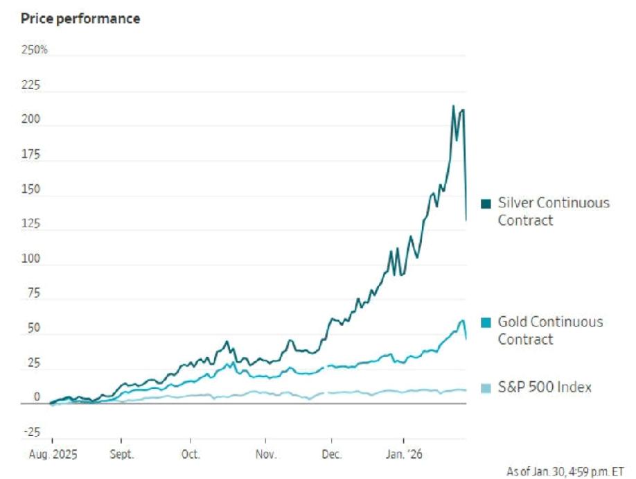 金银遭血洗,一夜蒸发一个法国+英国! 昨天,特朗普提名鹰派的凯文·沃什为美联储主席,引爆贵金属市场暴跌。现货白银盘中跌超35%、黄金跌近13%,均创四十余年最大单日跌幅,金银市值合计蒸发7.4万亿美元,与英法2025年GDP总和相当。美元应声大涨,美股、基本金属同步走弱。市场认为沃什提名夯实了美联储独立性,削弱贵金属避险逻辑,而杠杆平仓、获利了结进一步加剧抛售,分析师对此次暴跌成因仍存争议,多数认为是短期回调。 [机智]沃什提名引发的贵金属崩盘,是市场对美联储政策预期的剧烈修正,亦是前期投机热潮的必然反噬。从1980年金银暴跌到此次行情,不难发现贵金属市场始终受美元信用与货币政策主导,而当下杠杆资金的涌入更放大了波动。沃什的鹰派底色安抚了市场对货币贬值的担忧,却也戳破了贵金属“绝对避险”的泡沫。这场暴跌并非简单的政策冲击,更是全球资本对美元体系信心的一次快速重估,而金银长期走势,仍将在通胀、地缘与美元博弈中寻找新的平衡!美联储提名 贵金属暴跌