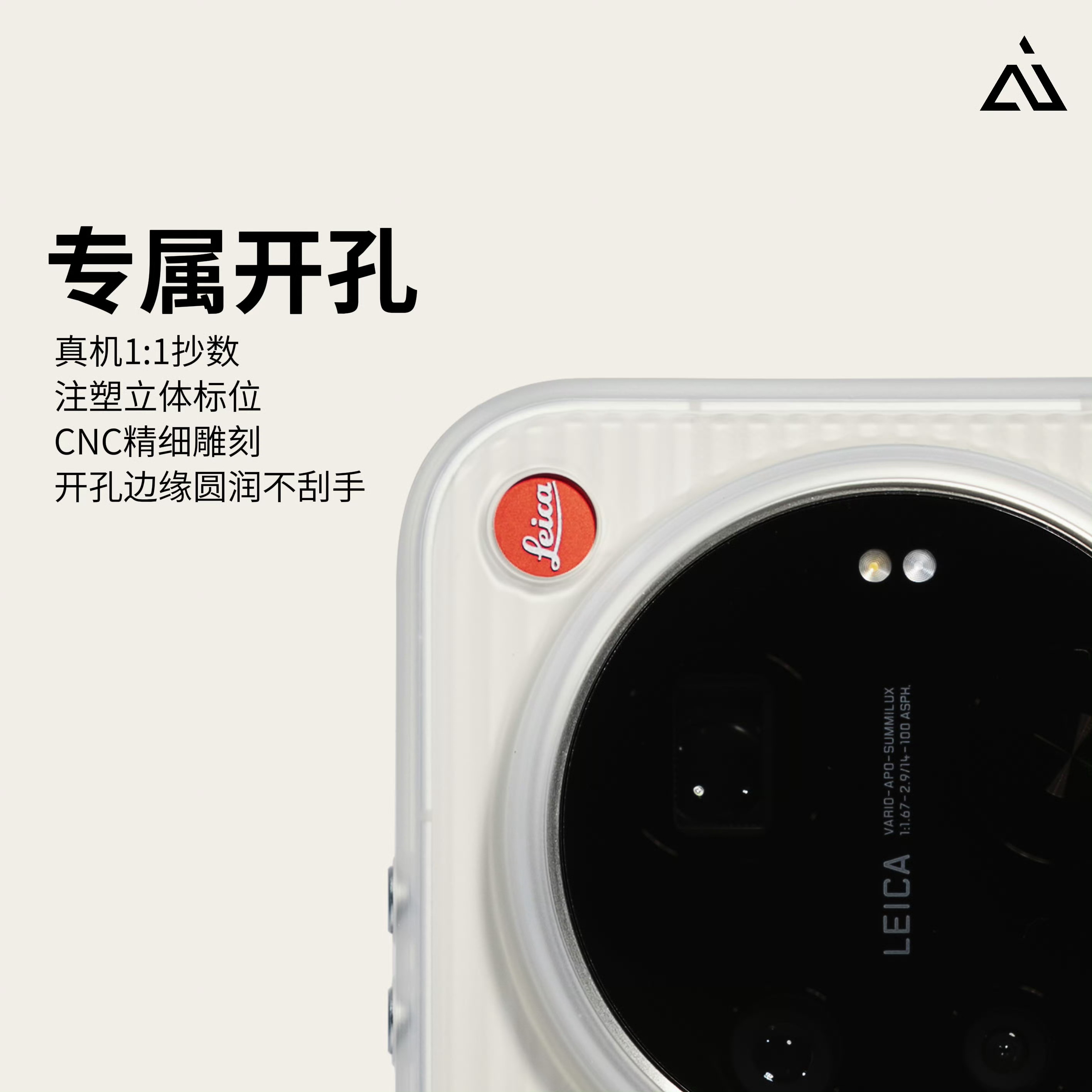 小米17 ultra 徕卡版「光栅」手机壳那些初看无感,久用愈显价值的细节设计之一:徕卡标开孔小细节徕卡标位一体化注塑成型,并通过 CNC 精雕完成孔位,有效避免传统垂直切削带来的生硬棱角与刮手触感。孔缘过渡经过精细优化,自然顺滑,触感圆润细腻,在不经意处体现出影像旗舰配件应有的水准与使用舒适度