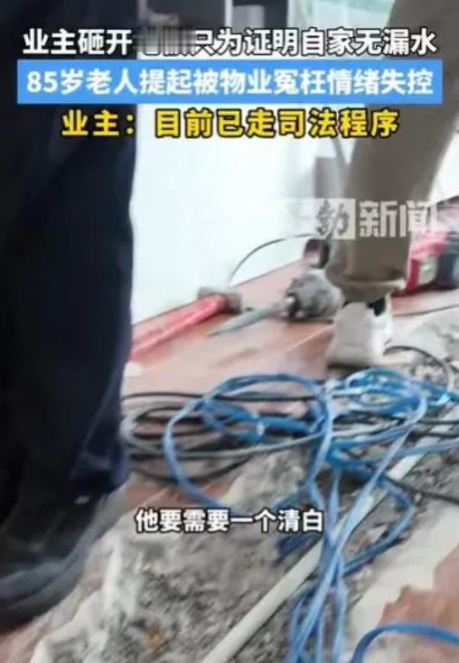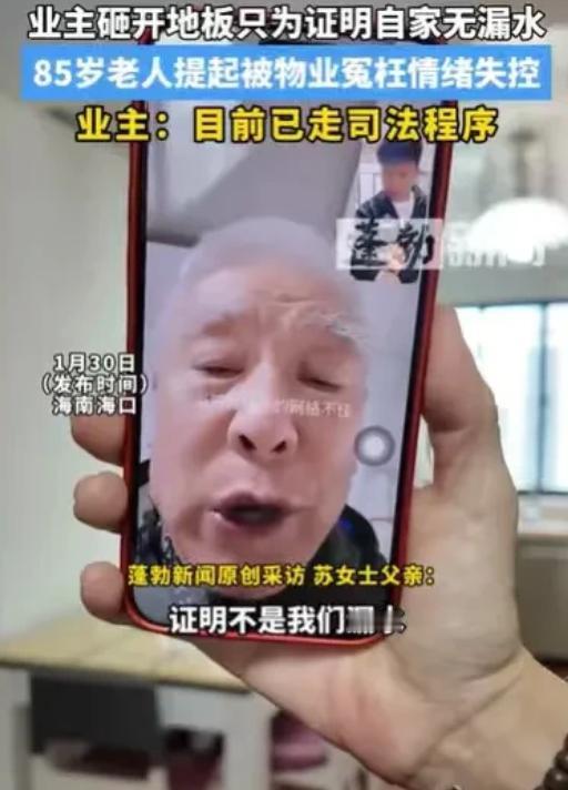 “只有冤枉你的人,才能知道你有多冤枉!”海南海口,高考状元楼下漏水,一直漏到14楼,物业一口咬定,是他们家水管爆裂漏水,导致业主们去外面住宾馆,物业要他们家赔偿住宿费,他们家就找来装修队,做水管压力测试,证明了没有漏水,但物业还是否定了,无奈之下,他们家找装修队砸开地板,露出水管,又证明了没有漏水,可物业还是否认,甚至说,不能光凭没有换水管,没有维修水管,就判定没有漏水。面对这样的物业,高考状元情绪崩溃,哭了。 最近在海口某个小区,有这么件事闹得挺大,让人看着又是生气又是心酸,85岁的苏爷爷,那是当年的高考状元,一辈子都在科研所搞研究,那是出了名的讲道理、认死理。 可谁能想到,这么一位受人尊敬的老知识分子,竟然被小区物业给硬生生冤枉了好几年,最后逼得没办法,为了自证清白,不得不把自家住了15年的地板给砸了个稀巴烂。 2021年,当时小区里不知道哪漏水,水势还不小,一直从楼上渗到了14楼,好几户人家都被水泡了,家里根本没法住,大伙只能无奈去外面开宾馆。 物业那边呢,也没找个专业师傅来好好查查,电工拿起电话就给苏爷爷打了过去,一口咬定就是苏爷爷家的水管爆了,还狮子大开口,让苏爷爷把受影响业主的宾馆住宿费全给包了。 苏爷爷一辈子清清白白,这黑锅哪能随便背?他当即就找了个正规装修队,给家里的水管做了个全套的打压测试,测试结果那是明明白白的,自家水管好着呢,一点漏水的迹象都没有。 反倒是大家都怀疑,这水八成是从小区的公共管井里漏出来的,可物业那边就是不听,也不认这测试结果,死咬着苏爷爷家不放。 本来以为只要讲道理这事就能过去,结果物业换了人之后,那脸变得比翻书还快,之前承认过的公共管井问题全当没发生过,依然认定全是苏爷爷的责任,时不时还来催缴那所谓的“赔偿费”。 苏爷爷这种老派知识分子,把名声看得比命都重,这口恶气憋在心里好几年,成了全家的一块心病。 女儿苏女士看着老父亲一天天闷闷不乐,身子骨都快垮了,心里那个急啊,心想这事必须得有个说法,不然父亲这辈子都得带着遗憾。 到了2026年1月26号,苏女士也是豁出去了,做了个狠决定:砸地板!她特意把15年前给家里装修的那帮师傅请了回来,还花钱请了公证处的工作人员到现场全程盯着,就是为了把这事办得公开透明,不给物业留一点找茬的机会。 随着那一块块地砖被砸开,埋在地下的水管终于露出了真面目:那还是2010年装修时铺的原装管子,完完整整的,连一点破皮渗水的痕迹都没有,周围的混凝土干得透透的。 施工队的头当场就拍胸脯保证:这管子绝对没动过,也没修过,就是原装货,漏水跟这一点关系都没有!社区网格员和公证员也都在场,白纸黑字把证明给开得清清楚楚。 可让人寒心的是,即便事实都摆在眼前了,物业那边还是在那打太极,虽然不得不承认苏爷爷家水管没问题,但对于2021年漏水的真正原因还是说不出一二三来,更别提给被冤枉了好几年的苏爷爷道歉了。 看着被砸得一片狼藉的家,再想想这几年受的窝囊气,一辈子要强的苏爷爷终于绷不住了,当着镜头老泪纵横:“碰上这种物业,我们是一点办法都没有,我心里是真的苦啊……” 苏女士说,这回花好几万块钱砸地板,根本不是为了要赔偿,纯粹就是为了给老父亲争这口气,还他一个清白,这钱花得值,与其拿来给老人买补品,不如先把这块心病给去了,这房子现在是没法住了,以后肯定得卖,再也不想跟这种物业打交道了。 就在1月26号下午,苏女士已经一纸诉状告到了法院,要求物业公开道歉、承担全部责任还得赔偿损失,法院那边已经受理了。 这事一传到网上,网友们也都炸锅了,大家都说,这物业就是典型的不干人事,查漏水没本事,欺负老实人倒是有一套。 苏爷爷这么大岁数了还要遭这种罪,搁谁心里都不好受,物业本来是给业主服务的,现在倒好,成了业主心里的刺。 其实大家这么生气,不仅仅是因为这一件事,而是这种类似的物业纠纷在生活里太多了。 业主有了麻烦找物业,不是推就是拖,最后逼得大家只能走极端路子去维权,真心希望苏爷爷这官司能赢个痛快,也希望所有的物业都能长点心,别再让业主们寒心了。 谁愿意为了证明自己没干坏事,被逼到砸自家地板的份上呢? 对此你怎么看? 信源:蓬勃新闻