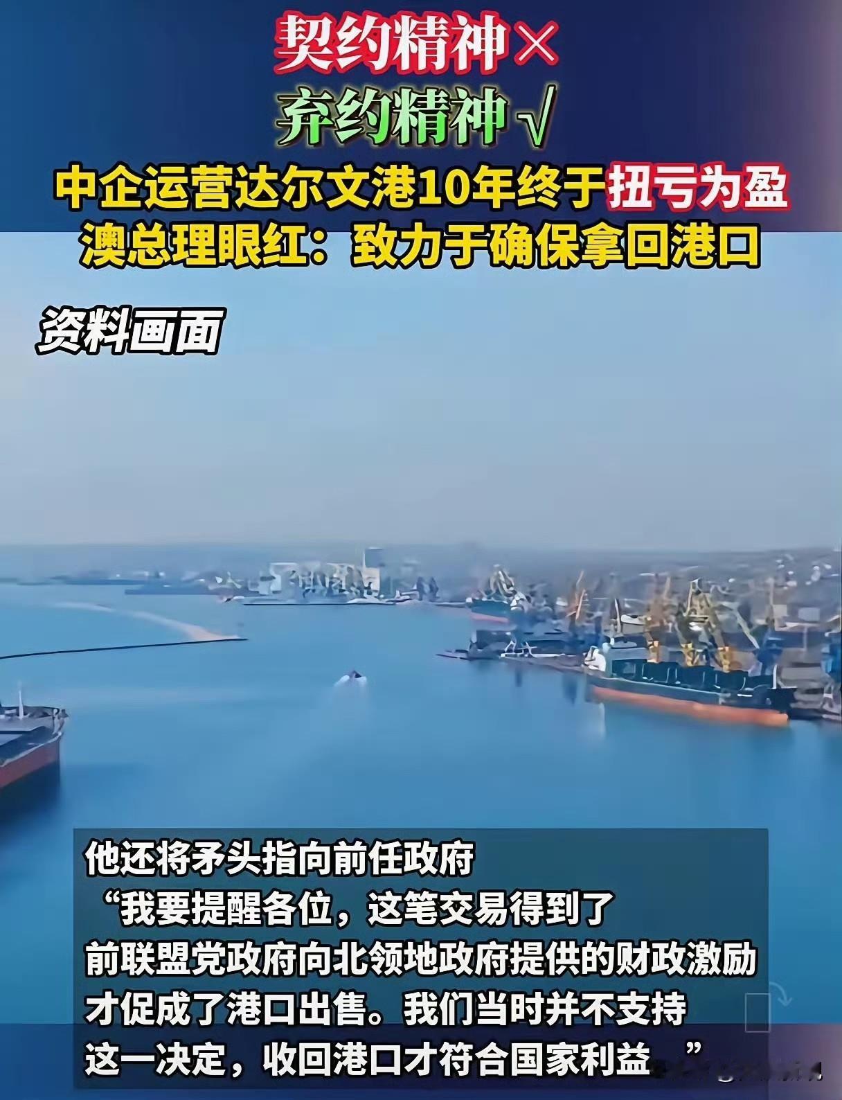 达尔文港扭亏为盈,澳总理眼红,公开称要想办法收回港口。除了眼红港口收益,澳大利亚收回港口的另一个目的就是向美国表忠心,但澳方多轮审查均未发现中企有任何违规及安全风险,如果强行收回恐面临巨额赔偿,影响两国双边贸易。目前看奥大利亚仍然没有死心,澳总理的最新谈话能看出,其依旧虎视眈眈在寻找机会。
