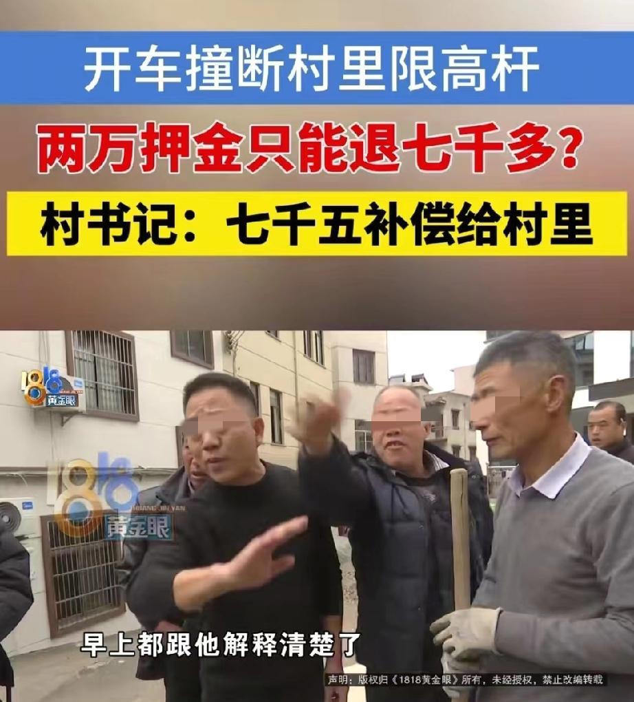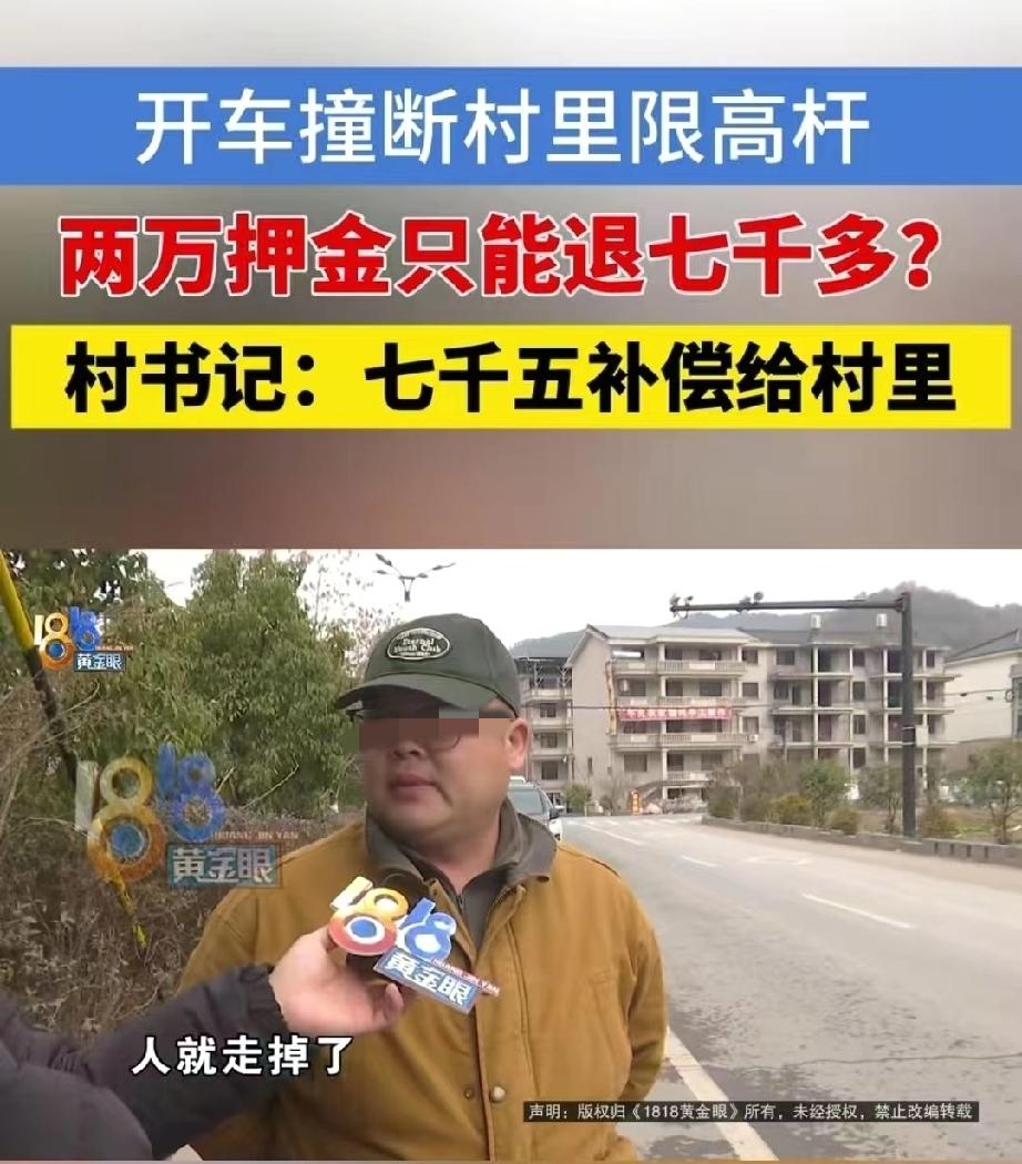 浙江金华,男子开车没注意,撞坏村里道路的限高杆,考虑到限高杆价值不高,报保险的话