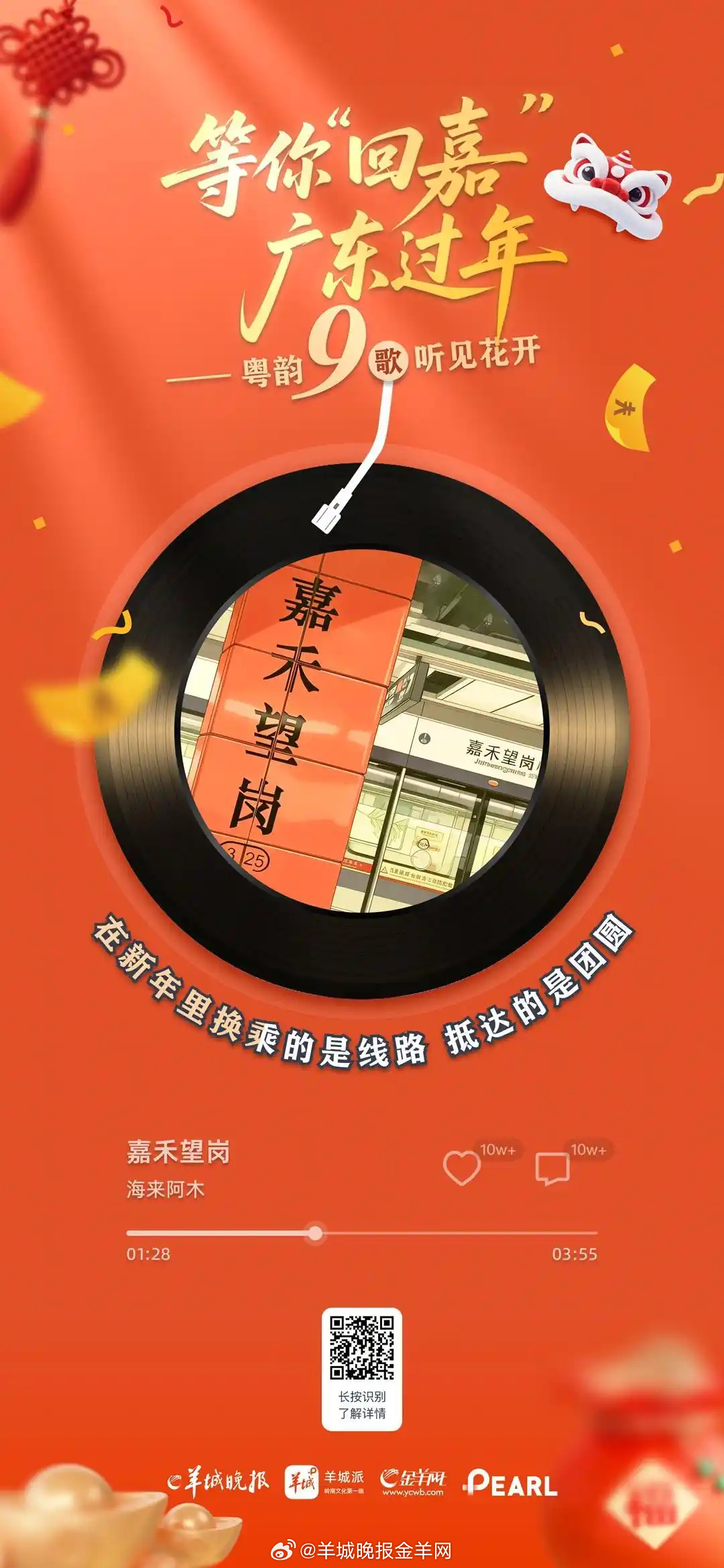 近日歌曲《嘉禾望岗》爆火,让广州这座地铁站在全网刷屏。其实,不只嘉禾望岗,广东不少地方也有着自己的“主题曲”。向大家分享9首以广东著名景点为题的歌曲,用独特旋律串联起广东的山海风光与千年文脉,诚邀各方朋友踏歌而来,#请到广东过大年#!#活力广东时尚湾区##不辞长作岭南人#
