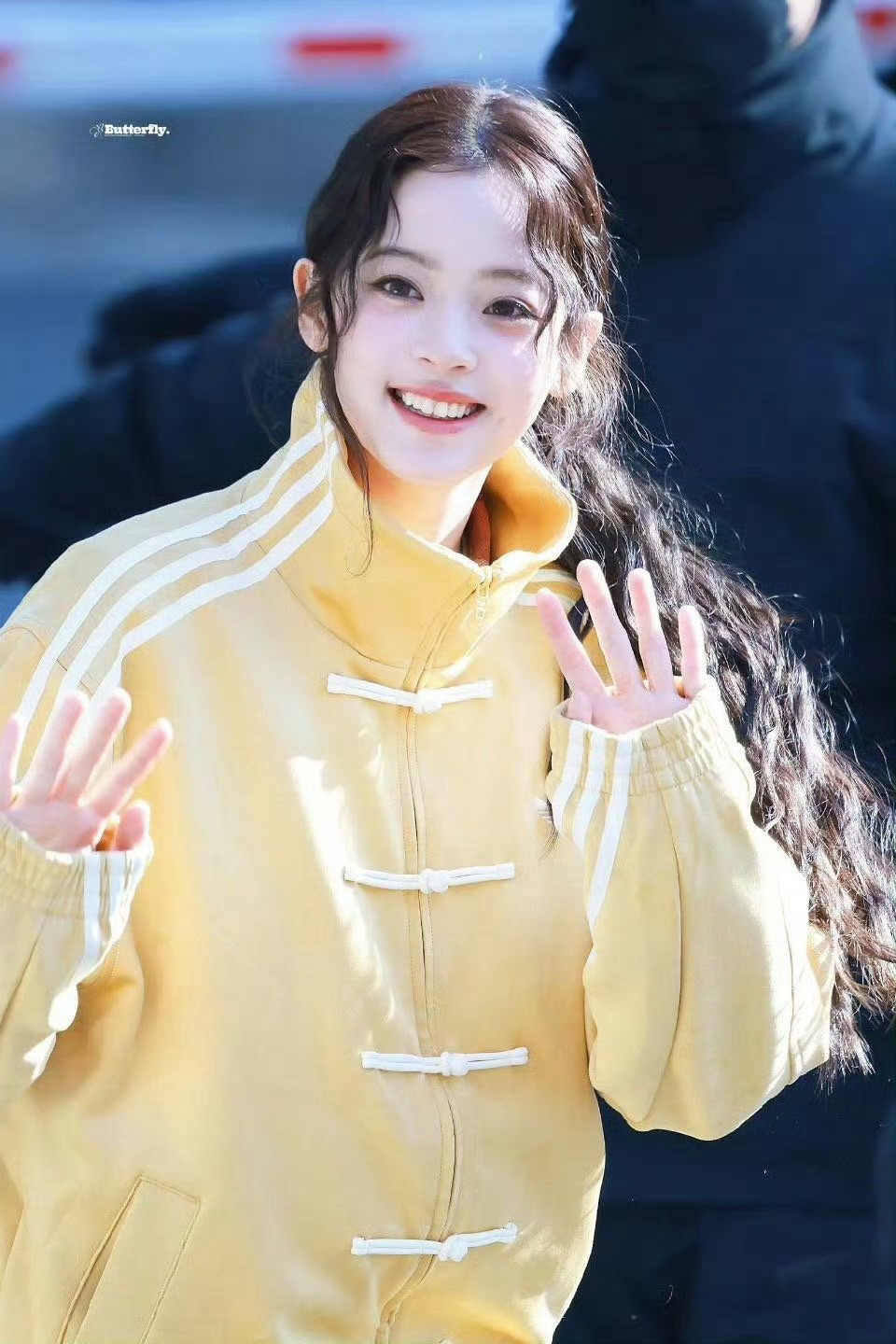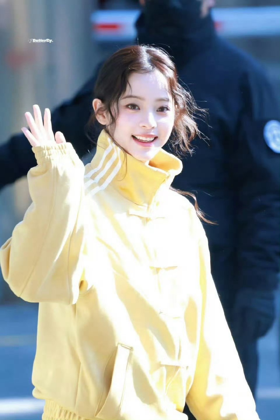 欧阳娜娜对着镜头打招呼超明媚呀,像洋娃娃~