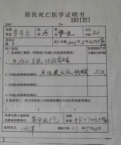2003年,上海一男大学生意外去世,因欠下医药费被医院拒开死亡证明。17年间,遗体在殡仪馆存放共产生费用20余万,而工作员称“缴费后才能火化”。 2003 年初夏的上海,空气里还带着梅雨季特有的潮涩。李奇乐拖着疲惫的身子从校园回到出租屋,胃里一阵阵抽痛,像有一只无形的手在狠狠攥着。 他以为又是前几天的老毛病,随便吃了点粥想缓一缓,却在夜里痛到满头是汗,几乎站不住脚。 第二天清晨,父母胡月琴和李沪三接到电话,匆匆从老家赶来。到医院时,看到的便是儿子被推进抢救室那一刻慌乱的背影。 医生说,是急性胰腺炎,情况严重,需要立即下重药、上呼吸机,准备 ICU 隔离治疗。 那是李奇乐生命中最后的 53 天。 ICU 的门永远紧闭,父母每天守在外面,像守着一个迟迟不开的大门,门后是希望,也是绝望。 胡月琴记得每次看到医生从里面走出来,她的心都会猛地收紧,“是不是又要交钱了?是不是又有新情况?” 医院的费用每天都像陡坡一样往上翻跳,几千、上万,数字越来越陌生,也越来越冰冷。 李沪三曾站在收费窗口前,攥着皱巴巴的钱,手指都在抖。他不识几个字,只会一次次问:“还差多少?我再想办法。” 他做木工的手长满老茧,本以为能为儿子挡住风雨,没想到某天竟连救命的钱都快凑不齐了。 53 天后,ICU 外,一盏红灯灭了。医生走过来,只是淡淡一句:“人没了,你们节哀。” 胡月琴当场瘫坐,声音嘶哑得像破布:“你们再救救,再救救他,我求求你们……” 为了办理遗体火化,医院需要开具死亡证明。但因为他们欠下十几万元的医疗费未能结清,院方拒绝出具证明。 李沪三焦急得像热锅上的蚂蚁,一次次去办公室求情;胡月琴跟在他后面,眼睛哭得红肿。 她记得那天的雨特别大,办公室的门却“砰”一声在他们面前关上。只留下一句冰冷的话:“钱没结清,死亡证明开不了。” 没有死亡证明,殡仪馆也无法火化遗体。于是,李奇乐的身体,只能继续停放在冷冰冰的遗体冷藏柜里。 他们曾四处奔波、上访、写信,希望能让儿子“回家”,希望能让这件事有个说法。可现实常常像一堵墙,无论他们怎么撞,都纹丝不动。 时间久了,李沪三的背也驼了,走路由稳健变得摇晃。有一年冬天特别冷,胡月琴早上起床看到他还窝在被子里,一动不动。她喊他的名字,却再也听不到一句回应。 那个一生在木屑与汗水中度日的男人,死时也未能见到儿子最后一面。 胡月琴的世界从此只剩一个人。 殡仪馆的冷柜里,李奇乐的遗体每天都在被计费。日复一日,月复一月,直到数字累积到 20 多万。工作人员说:“要火化可以,先把保管费结清。” 这一要求像一把无形的钩子,钩住了胡月琴的心。她不是不想交,而是根本交不起。 “儿子躺在那里 17 年,我连最后一层土都没法给他盖上……”她常常自言自语,像在责怪自己,又像在向空气倾诉。 许多夜里,她会梦见那段狭长而冰冷的 ICU 走廊。梦里的灯永远亮着,永远没有尽头,儿子的影子在尽头招手,可她无论如何也走不到。 直到某一天,一个律师团队听说了她的事情,愿意帮助她走法律途径。那之后是一段漫长的取证、申诉、奔波,胡月琴走过无数次法院的台阶,但每走一步,都像是在替儿子迈出一步。 终于,十七年后的审判庭上,尘封的事一条条被摊开。 法院查明,正是医院因医疗费纠纷拒绝开具死亡证明,导致遗体无法及时火化,属于违法扣证行为。由此产生的巨额殡仪馆保管费用,医院应当承担。 判决书落笔的那一刻,胡月琴的眼泪终于流下来,但不是痛,是一种压抑太久后的解脱。 几天后,殡仪馆的工作人员把李奇乐的遗体推到最后的告别室。冷柜门终于在 17 年后再次打开。 空气中带着轻微的冰冷味,像时间冻结的残留。 胡月琴的手抖得厉害,但她还是伸出手,轻轻按在棺盖上。 “乐乐,妈带你回家了。” 那一刻,整个世界像突然安静下来。 十七年漫长的等待,终于在这一句轻声的呼唤中落幕。