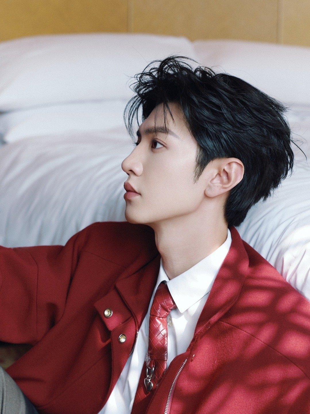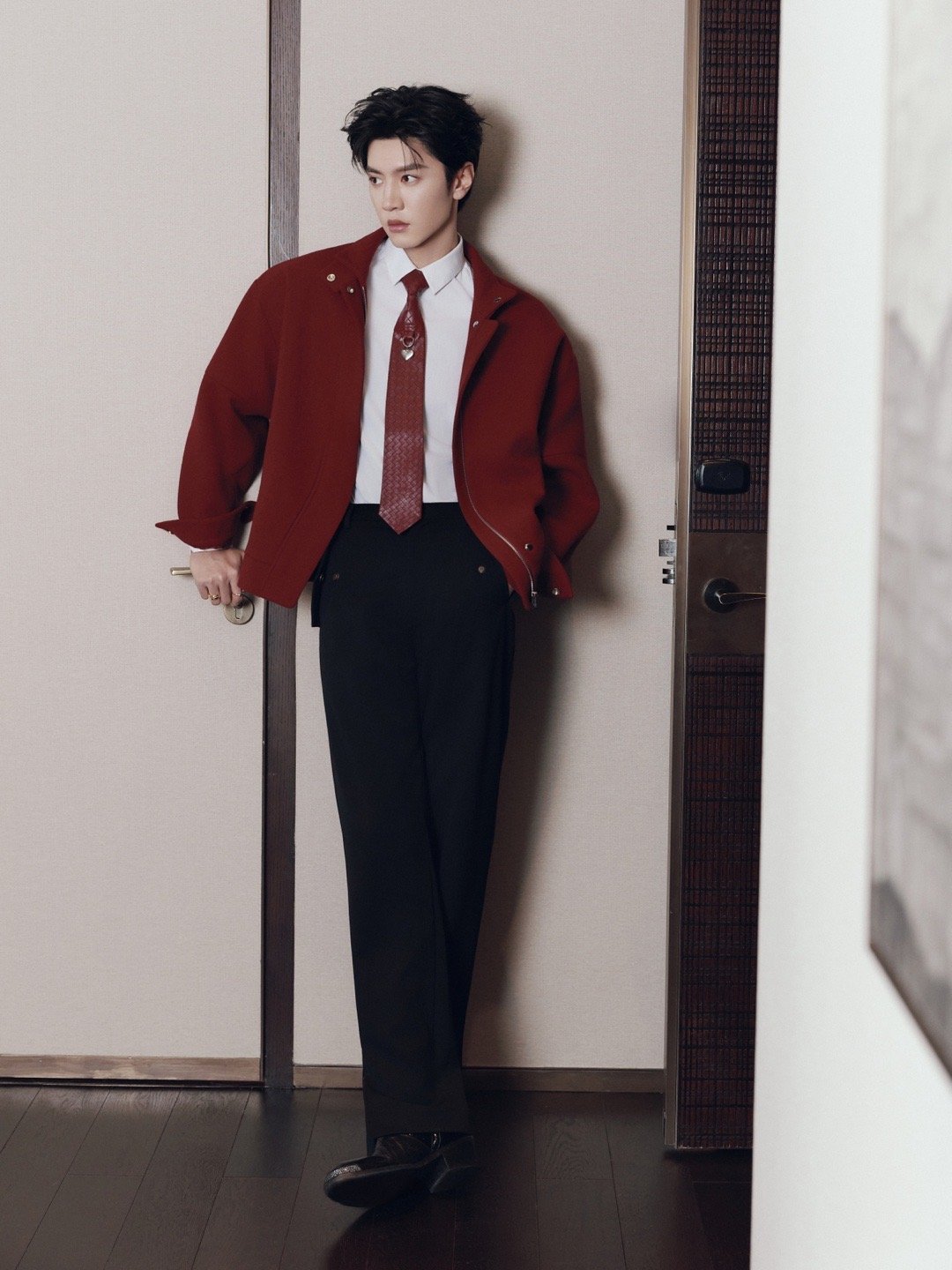 陈哲远|今日活动造型出图,红色夹克外套,搭配皮革编织领带,佩戴Piaget伯爵高级珠宝,矜贵潮流又有新春气息,帅得很权威👏