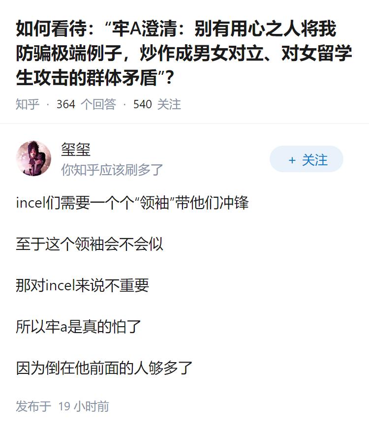 如何看待:“牢A澄清:别有用心之人将我防骗极端例子,炒作成男女对立、对女留学生攻击的群体矛盾”?