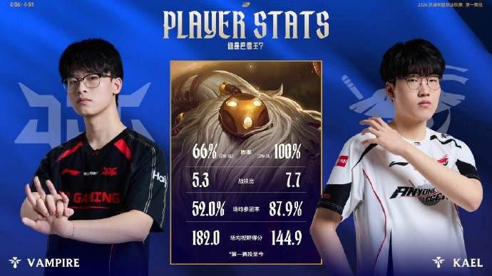 谁是巴德王?第一赛段至今JDG-Vampire与AL_Kael使用巴德数据对比如下