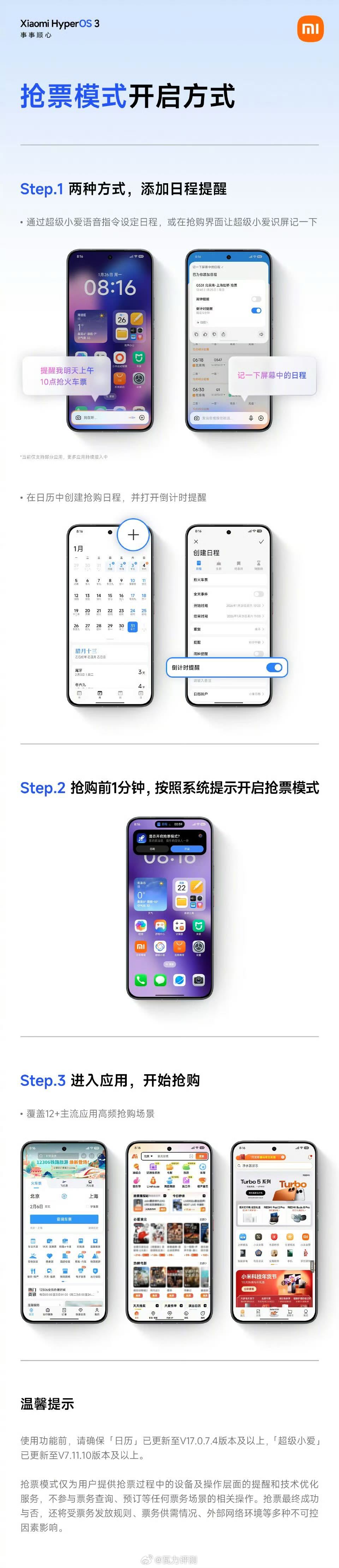 小米新出的那个抢票模式好多人没搞清楚怎么玩,他们今天官微给了个使用教程,大家可以看看,尤其是过年要抢票的,一定要关注一下。
