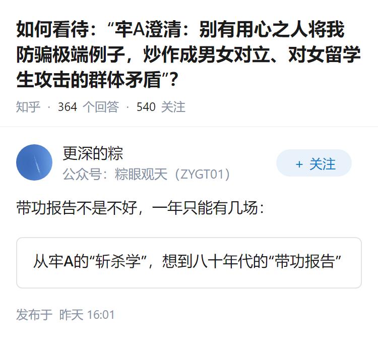 如何看待:“牢A澄清:别有用心之人将我防骗极端例子,炒作成男女对立、对女留学生攻击的群体矛盾”?