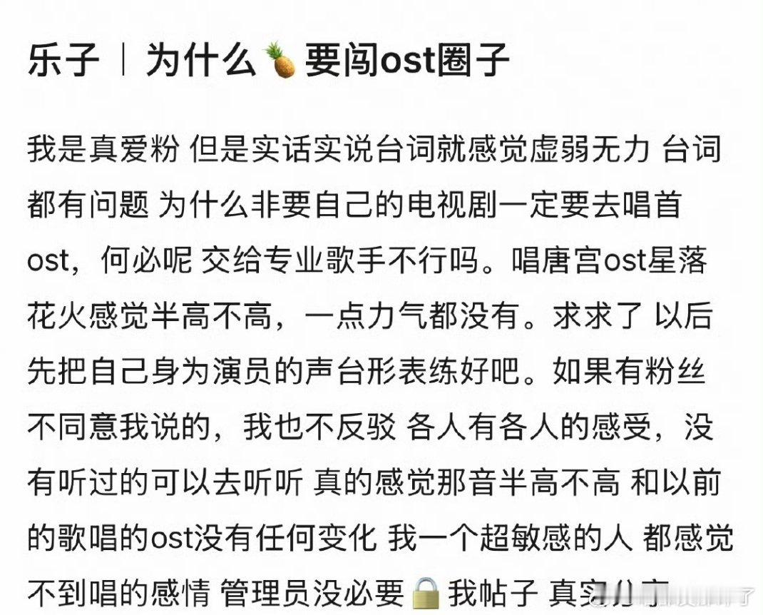 老🦌真爱粉挺清醒的,知道🦌姐声台形表都不太行至于为什么🦌姐要闯ost⭕️,这还能为什么,当然是为了捞💰啊