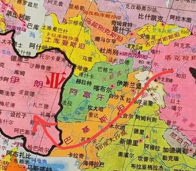 原来中国和伊朗之间正好隔了一个阿富汗,从地图上看,中国和伊朗之间其实挺近的,但是