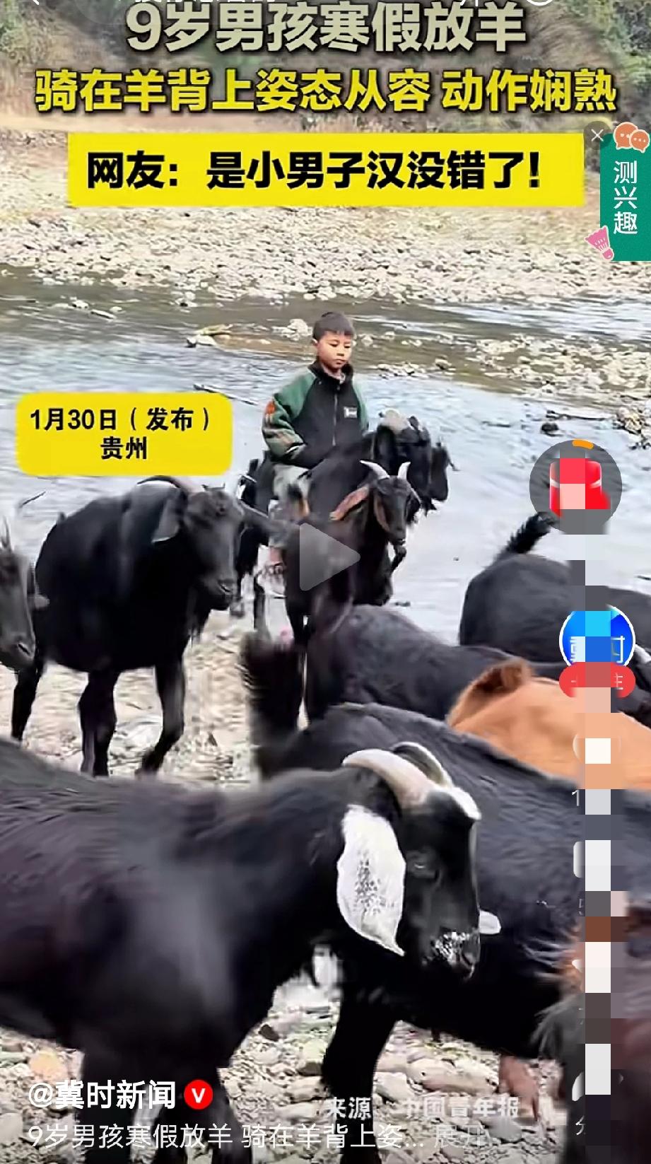 这只羊竟然还让他骑,简直是奇怪,我们小的时候骑羊,羊就跑,把我们摔在地上