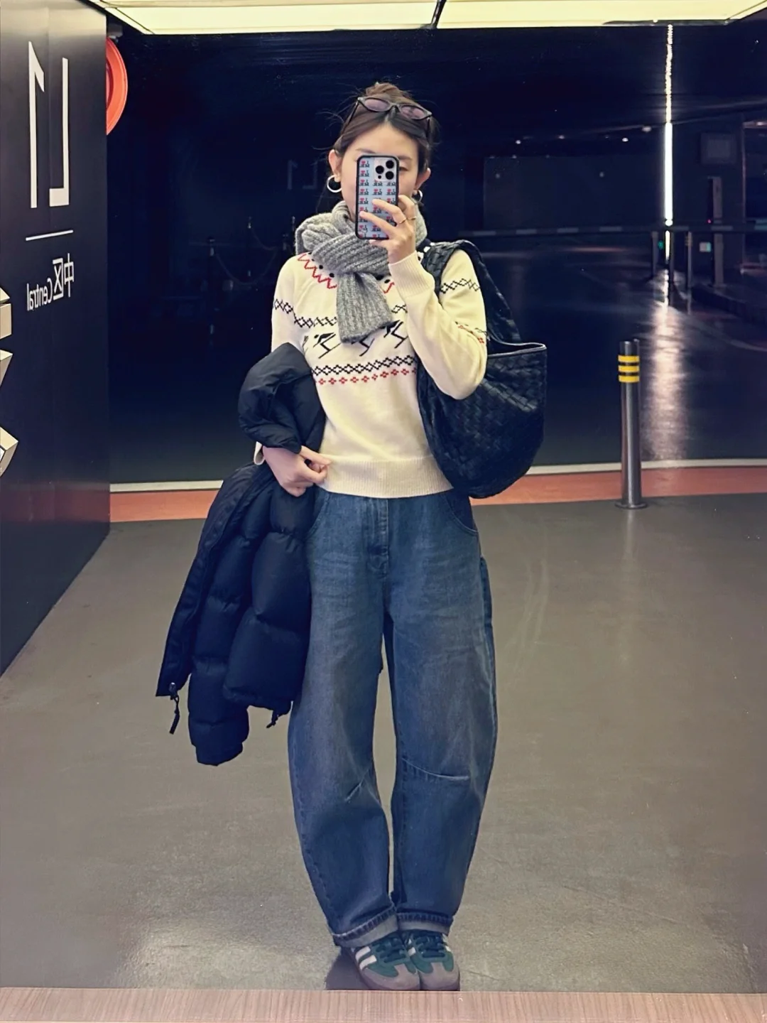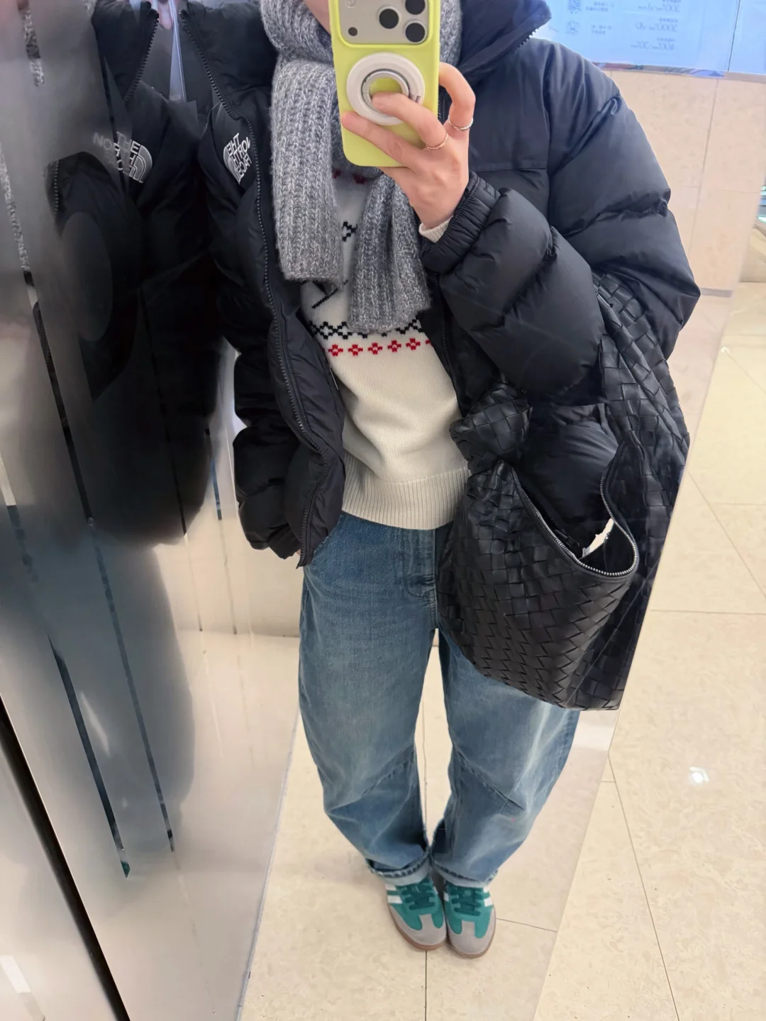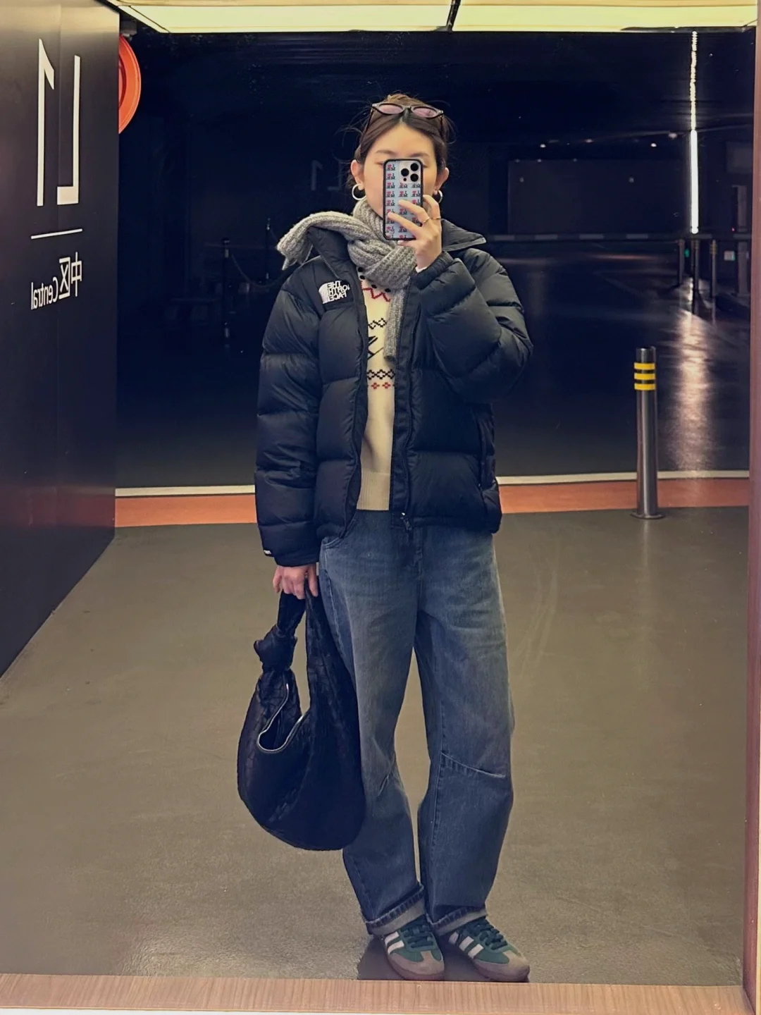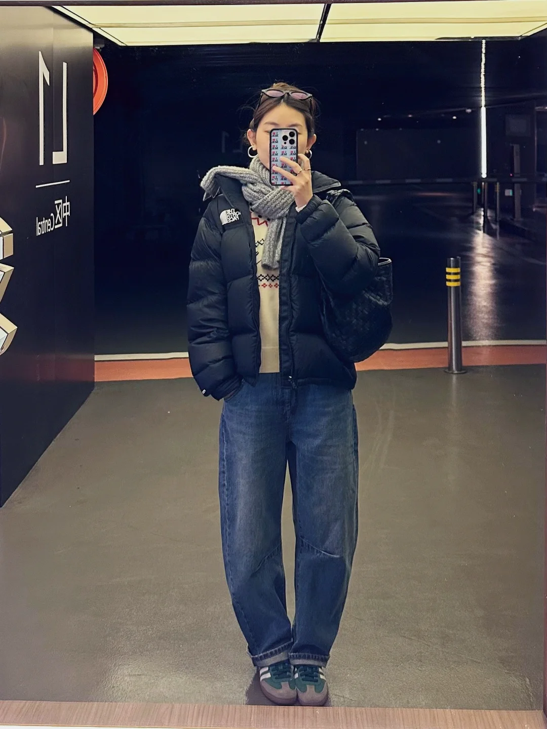 蓝盈莹这私服真的长在审美点上!长款羽绒服裹得严严实实却一点不臃肿,束脚卫裤松松垮