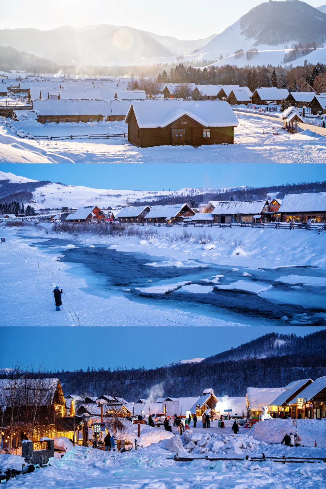 禾木分为新村和老村,核心在老村 雪山、木屋、秋千、小狗、白桦林…冬天像被施了魔法,随手一帧都是童话。 运气好时,还能遇见蓝粉天空、极光,甚至钻石星尘✨ 🏔️三大观景台(按头安利) 1️⃣哈登观景台|禾木C位王炸 全村视野天花板,日出晨雾、日落蓝调都封神。 冬季日出约9:30-10:00,日落18:00-19:20 从村子步行约30分钟,可走禾木桥-观景台-援疆桥小环线 2️⃣日落观景台|轻松看金山+篝火狂欢 离村子超近,木栈道走10分钟就到 是看日落金山、拍蓝调夜景的折中好位置 3️⃣ 沐野观景台|小众私藏机位 导航“沐野咖啡”,顺坡上行即到。 坡上有秋千,白天纯净,蓝调时刻静谧,美到犯规 ⚠️实用提醒 ① 冬季区间车停运,建议跟团或包四驱雪地胎车 ② 淡季门票100(含白哈巴、喀纳斯、禾木) ③ 凭5日内阿勒泰落地机票,可在禾木兑换吉克普林一日雪票或凌霄峰缆车票 ④ 住宿建议选老村,新村虽硬件好、近滑雪场,但离核心景观远,且冬季不能开车进老村。村里住宿设施朴素,但窗外皆是风景 ⚠️冬季版重点提醒:唇膏、护手霜、口罩、墨镜、帽子、厚手套、加热鞋垫、保温杯、薄可触屏手套、防晒霜 🍱美食推荐:清炒黑蘑菇、大盘鸡、椒麻鸡、馕坑肉、羊肉串、牛肉串、手抓饭(建议中午吃)