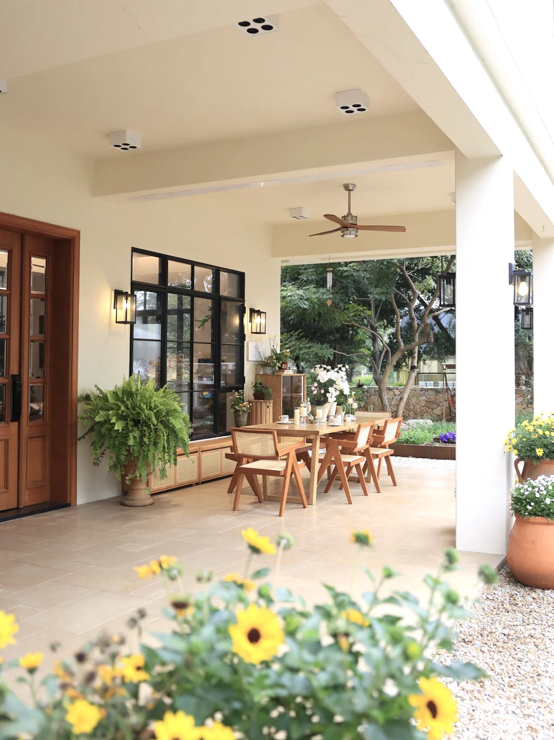 如今这处廊台,藏着日常的琐碎与美好,喝茶小坐、家人闲谈、朋友小聚皆相宜,每一处布置都贴合生活需求,这份实用与舒心,正是对理想家居的最好诠释,目前对这个空间满心欢喜。别墅别墅花园别墅廊台门廊实木家具原木风原木风别墅自然系别墅别墅设计花园植物