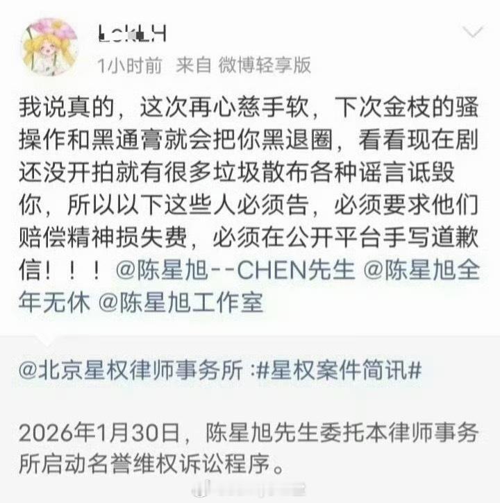 好消息:明星工作室如愿告黑坏消息:告的竟是我陈星旭粉丝心都碎了