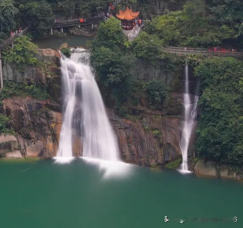 华东第一瀑布那可是真的名不虚传,在全国都超有名!我之前去打卡过。它水流磅礴,从高处倾泻而下,溅起的水花如同碎玉般四处飞溅。站在瀑布脚下,能感受到那股强大的冲击力,耳边是震耳欲聋的轰鸣声,仿佛整个世界都只剩下这壮观的景象。据说它的落差有好几十米,水量大的时候,远看就像一条白色的巨龙奔腾而下。周边的景色也很美,绿树环绕,空气清新。来这儿一趟,就知道它名扬全国的原因了。