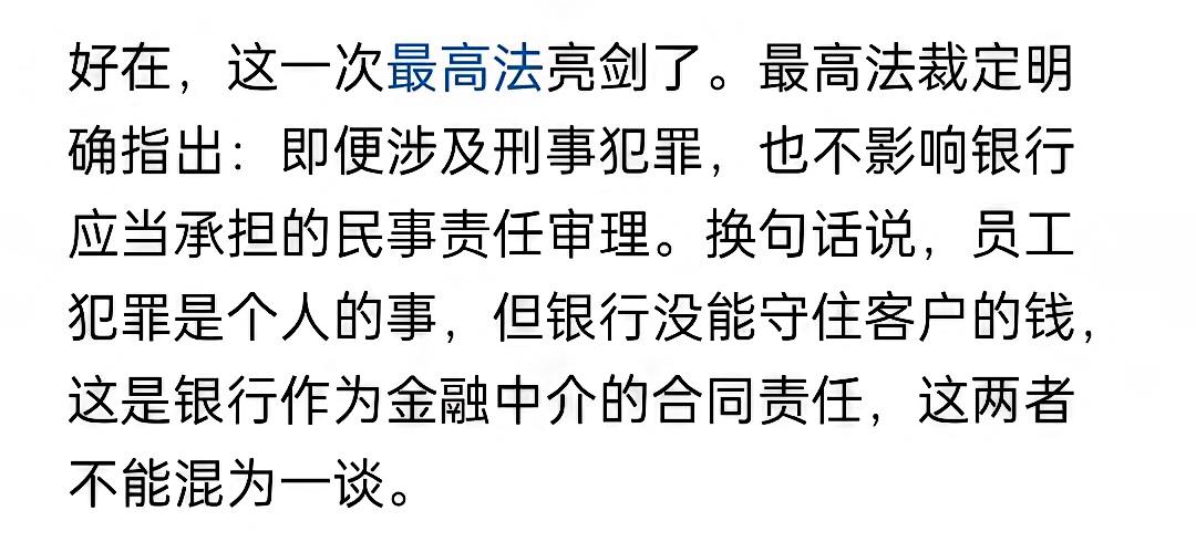 最高法硬刚到底! 银行再想靠甩锅员工赖掉储户血汗钱, 门儿都没有了! 储户信的是