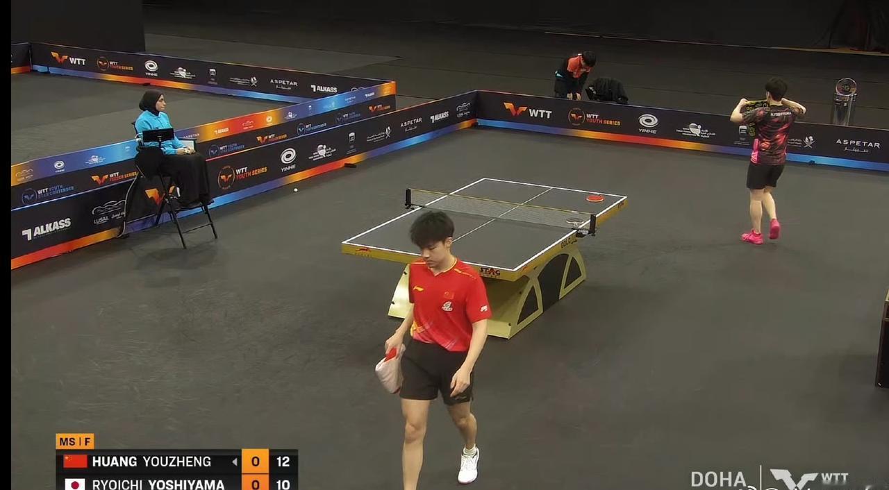 遭遇战! 黄友政🇨🇳对阵吉山僚一🇯🇵! 这是2026WTT支线赛多哈站男单决赛 。 目前第一局黄友政🇨🇳12-10险胜吉山僚一🇯🇵, 两人之前从未有过交手,吉山僚一今年21岁,世界排名第61位,在日乒男队排在第八位。 今年20岁的黄友政世界排名第46位,目前排在国乒男队第10位。 第一局比分非常胶着,两个人势均力敌,都在想方设法克制对方。 黄友政继续加油,拿下这个冠军,增加125积分,排名就要提升不少[奋斗]!