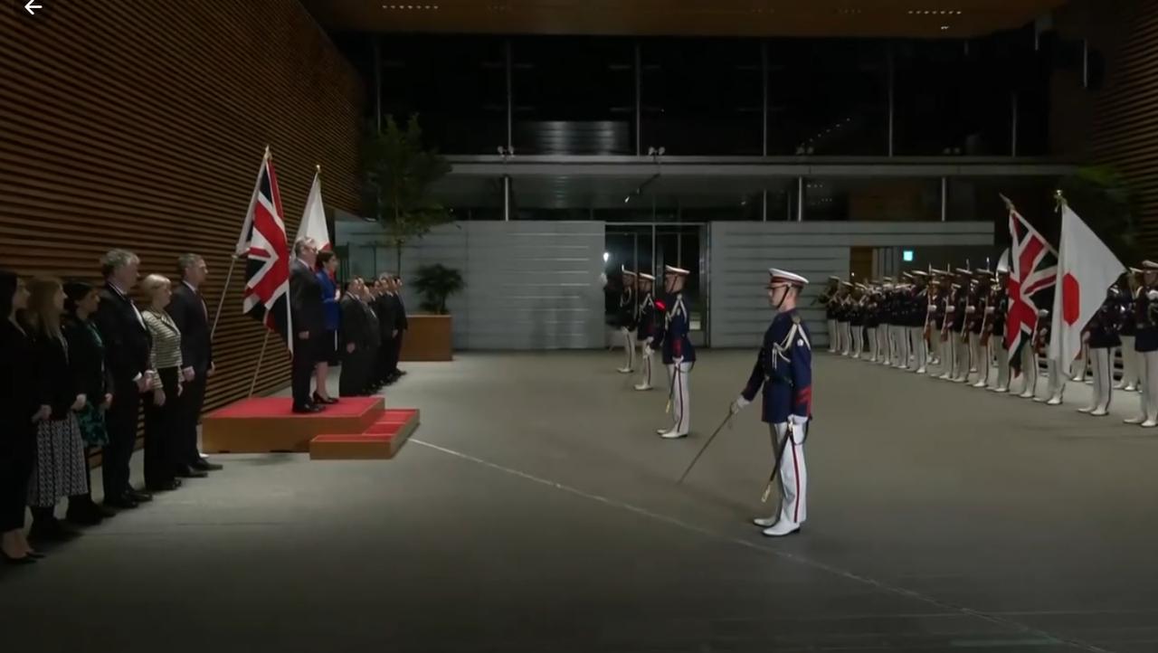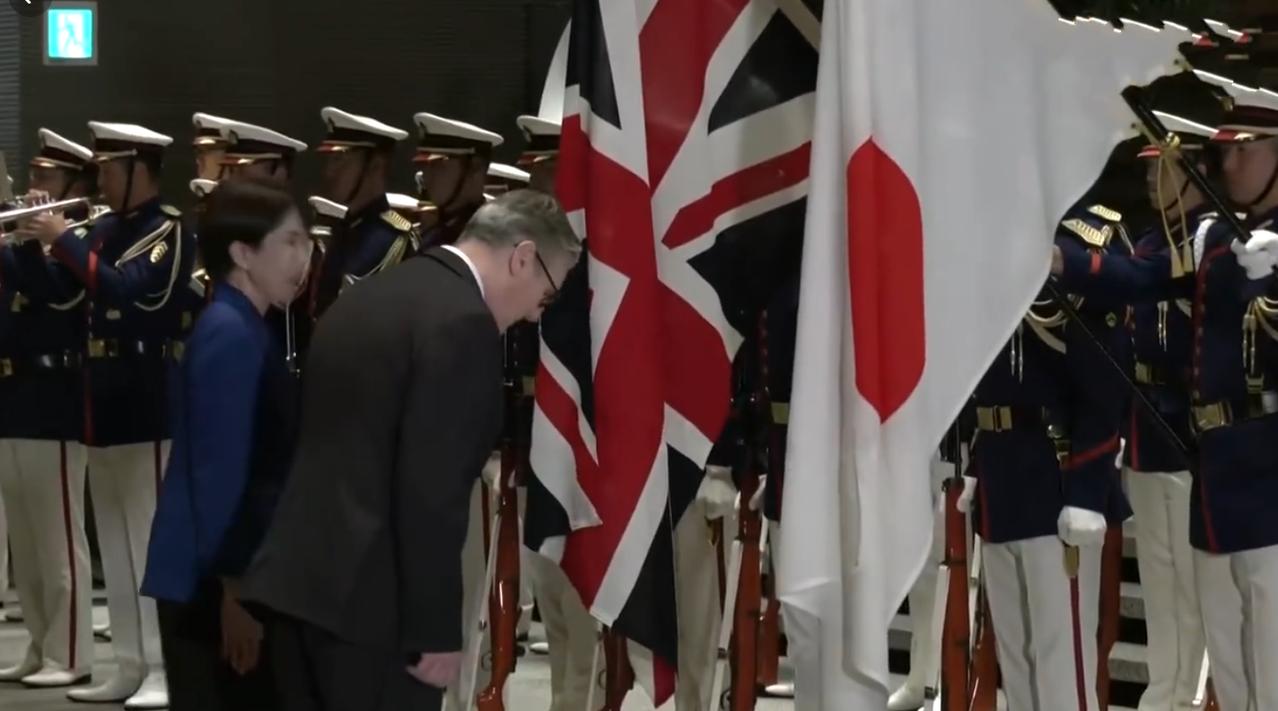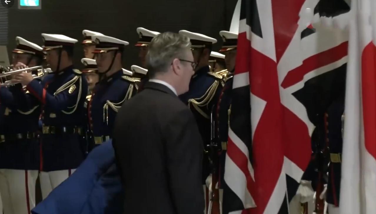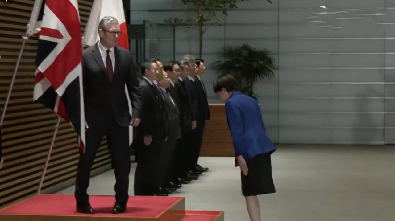 1月31日英国首相落地东京并没有打卡当地景点也没有品尝美食,而是去见高市早苗,就是不知道吃没吃晚饭?他还是穿着在上海穿的衣服,连领带都没有换,估计下飞机后就进入工作状态了。 从媒体晒出的照来看,斯塔默到日本天已经黑了,乘车到举行欢迎仪式的地方,日本女首相到门口亲自迎接,然后一起出席欢迎仪式。 让人没想到的是斯塔默从上海离开时心情还不错,怎么到了东京就表情严肃,脸上没有笑意了呢?估计欢迎仪式是正式场合,走流程时不需要表情吧!