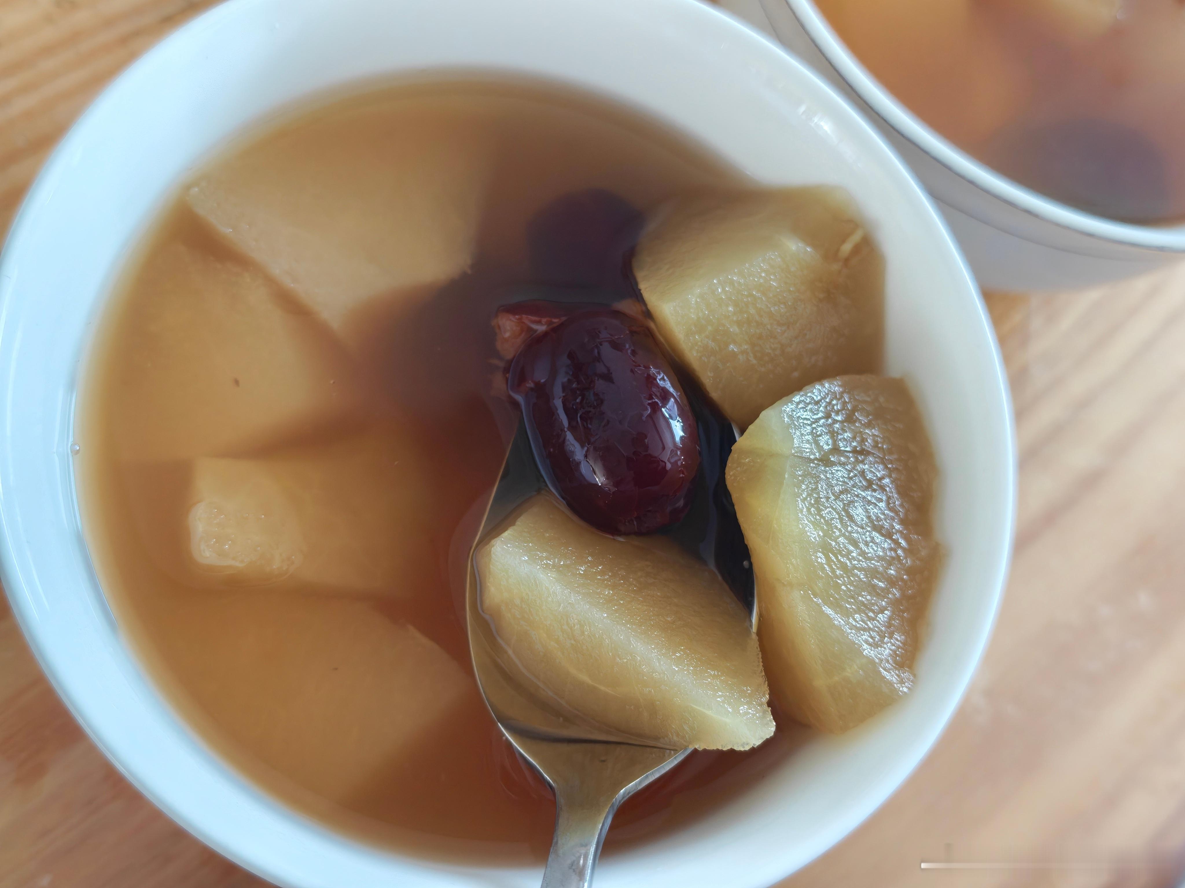汤水清润不腻,有梨的清甜、苹果的果香,还有红枣的温润枣香,甜度自然不齁