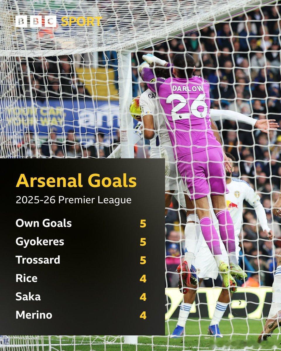 阿森纳本赛季英超队内射手榜↓利兹联0比4阿森纳