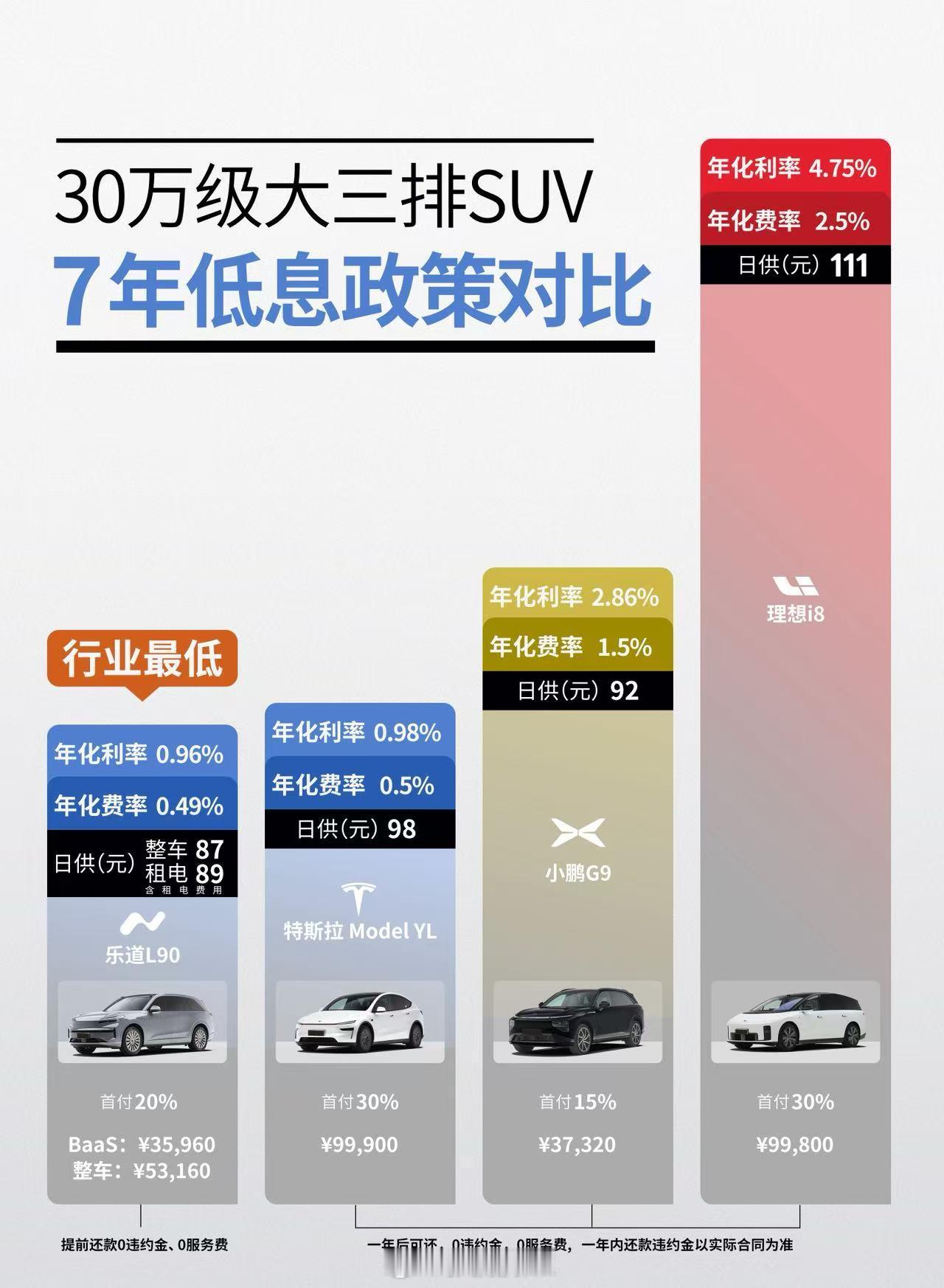 乐道2月购车政策:7年超低利率0.96%,首付20%起,L60日供69元、L90日供89元;0服务费、提前还款0违约金。