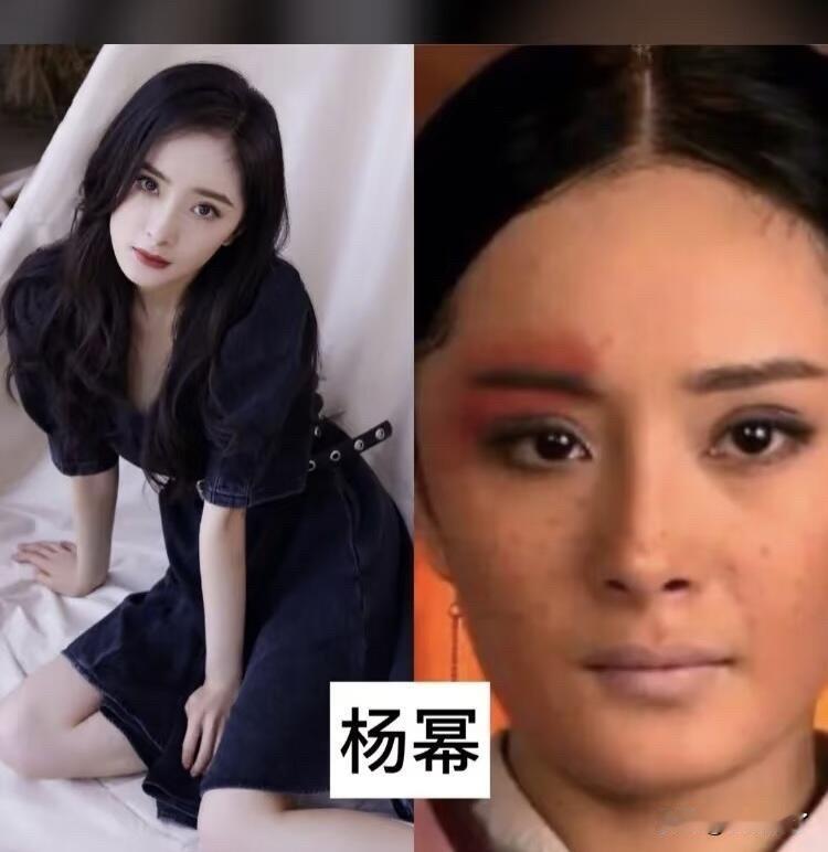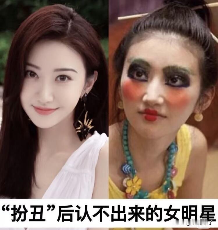 扮丑后认不出的女明星画面,杨幂是最好认的,也不丑,估计是容貌焦虑,接受不了太丑的妆造
