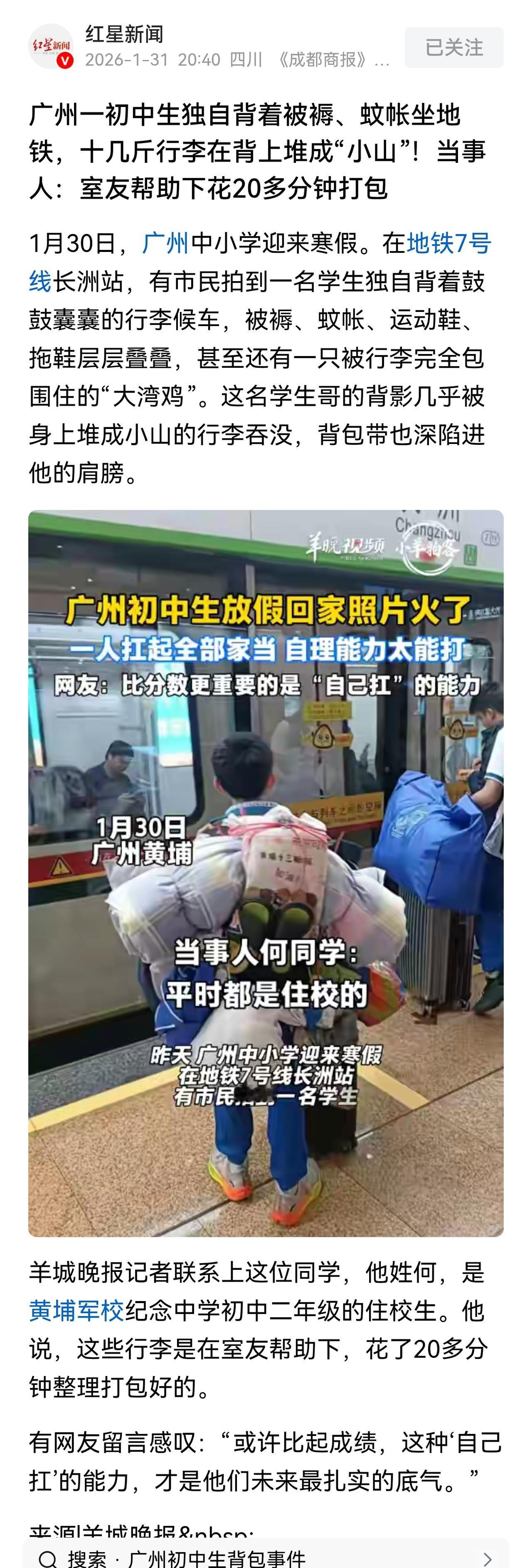 这也成为新闻,只能说明生活教育、生存教育的严重缺失。放假回家自己拿行李,不是学生自己该做的吗?
