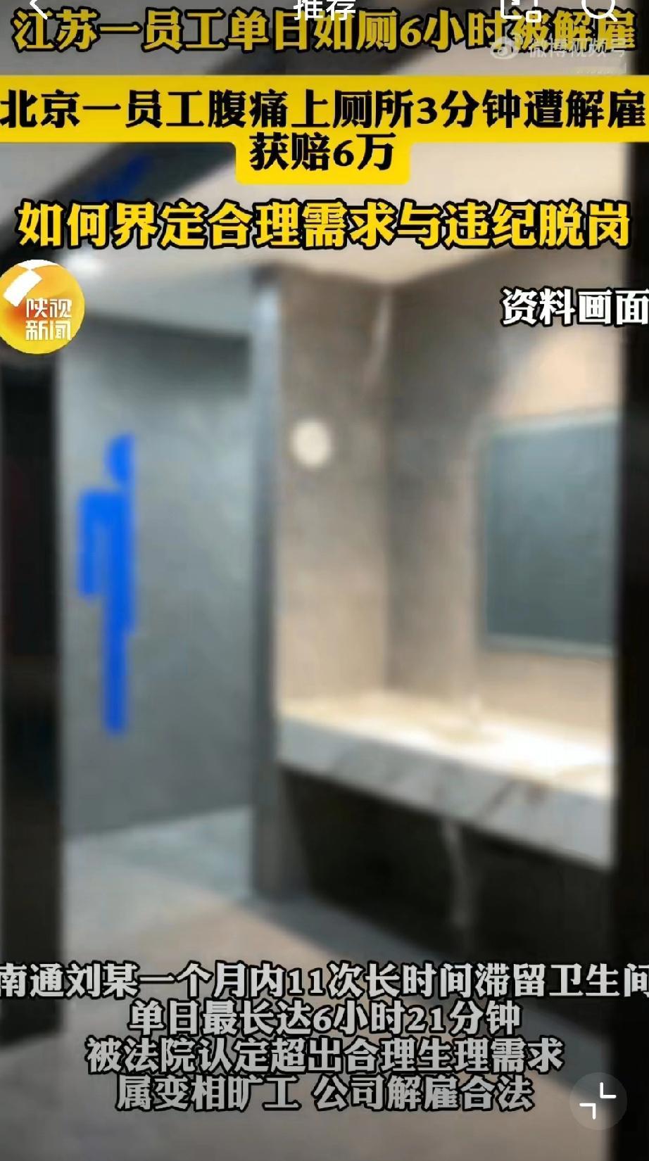 员工单日如厕6小时21分钟被解雇。三个离谱:第一,公司监控员工上厕所时间离谱;第二,上班时间8小时,员工如厕6小时21分钟更离谱;第三,被开除还有脸索赔20万…8小时工作制 长时间如厕危害 打工人身边事