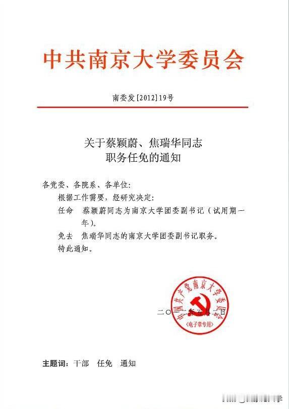扬州大学最年轻的女性副校长蔡颖蔚履新! 出生于1982年10月的蔡颖蔚,已由扬州大学副校长转任副书记。 目前她仍然是扬州大学最年轻的校领导,还是扬州大学唯一一位女性校领导。 尤为特殊的是,蔡颖蔚还曾长期在985高校南京大学工作,担任过教务处副处长、校团委书记。 蔡颖蔚履新后,她的排名顺序仅次于书记丁建宁、校长刘巧泉,是妥妥的三把手。 不得不说如此年轻的校领导,再加上有985高校工作背景,未来的发展前途不可限量。