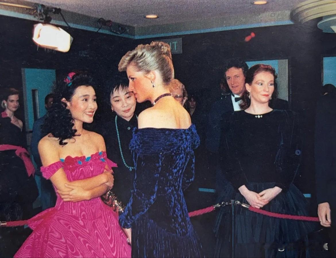 1986年冬夜的伦敦,年仅28岁的陈冲凭借《末代皇帝》走向国际,受邀参加英国王室晚宴,并与戴安娜王妃同框。陈冲为了配合《末代皇帝》的宣传,她梳着那个年代特有的卷发,并在头上别了一朵红色的配饰。这身装扮极具东方韵味,热烈奔放,多年后陈冲在回忆录和采访中也坦言,当时并没有留下太深的印象,因为“没有任何交谈思想的机会”,只是礼貌地握手寒暄。