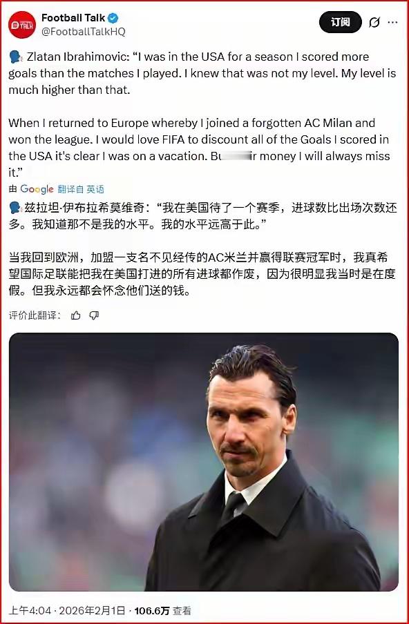 伊布说话太霸气了:希望国际足联把我在美职联的进球作废!