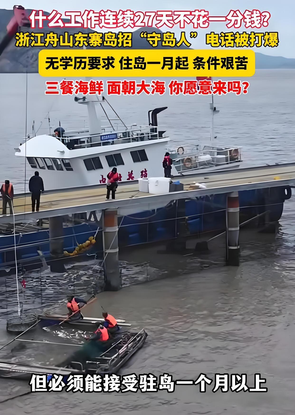 这两天浙江舟山的“守岛人”招聘火了,电话被打爆,5000多人抢13个名额。 听起来像个逃离内卷的童话,日薪300、包吃住、面朝大海,连学历都不要求。 但现实是,岛上只有铁皮房、咸水澡和割脸的海风,你以为是来度假看海,其实是24小时孤岛求生。 有人刚上岛就后悔,想走却没船,硬生生熬到27天没花过一分钱。 我要是没孩子,我就去了,反正我这人内向,不爱出门,隔你你会去吗? 舟山守岛人 浙江守岛人