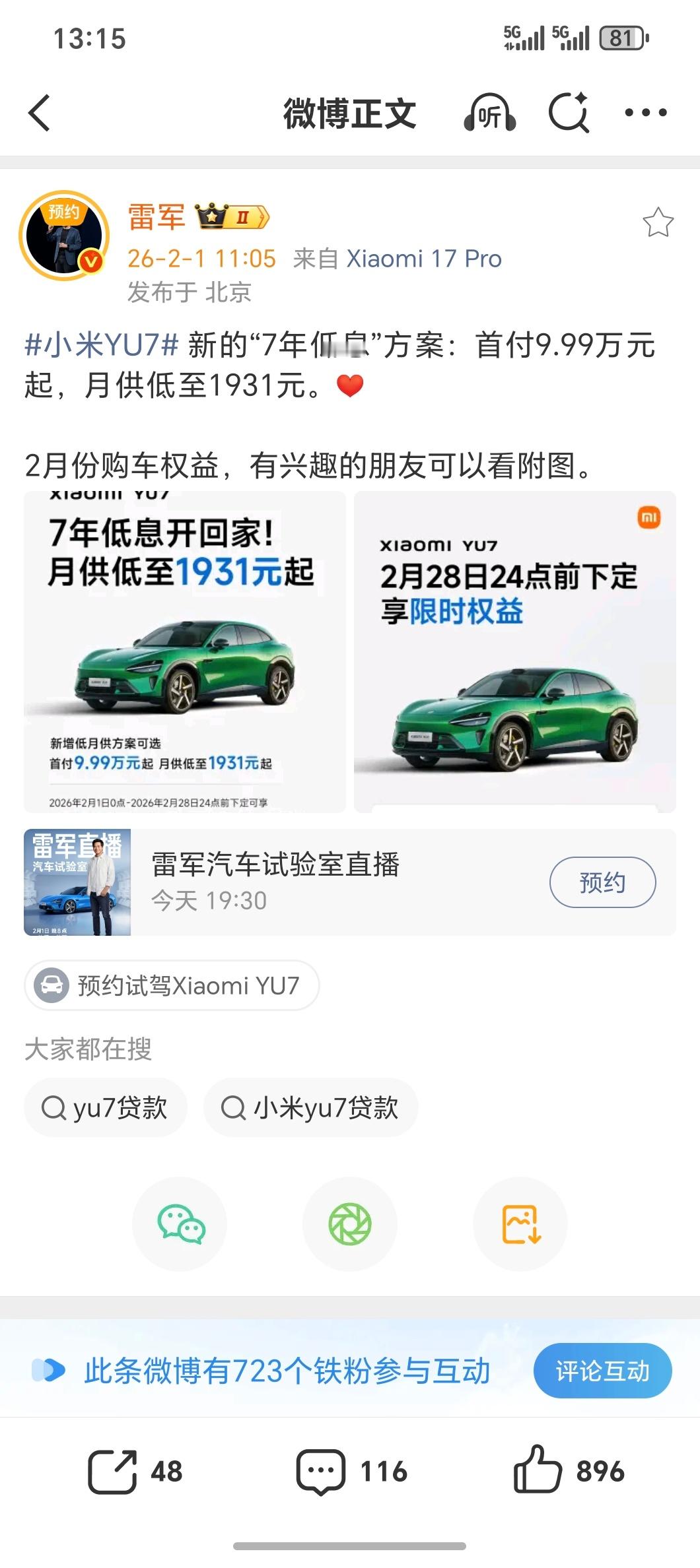 26年1月部分品牌的销量战报相比12月份环比跌幅都挺多的主要还是购置税新政,大家都在观望多家车企掏出了7年低息政策你会选择继续观望,还是过年前买车回家?大V聊车新能源汽车